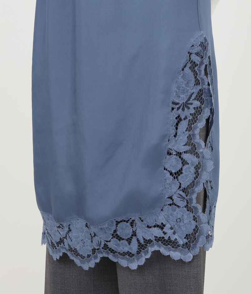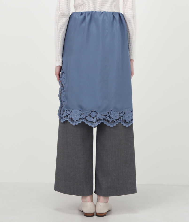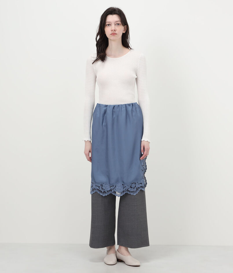 スカートはとろみのある素材とレースの絶妙なコンビネーションでガーリーな一着。