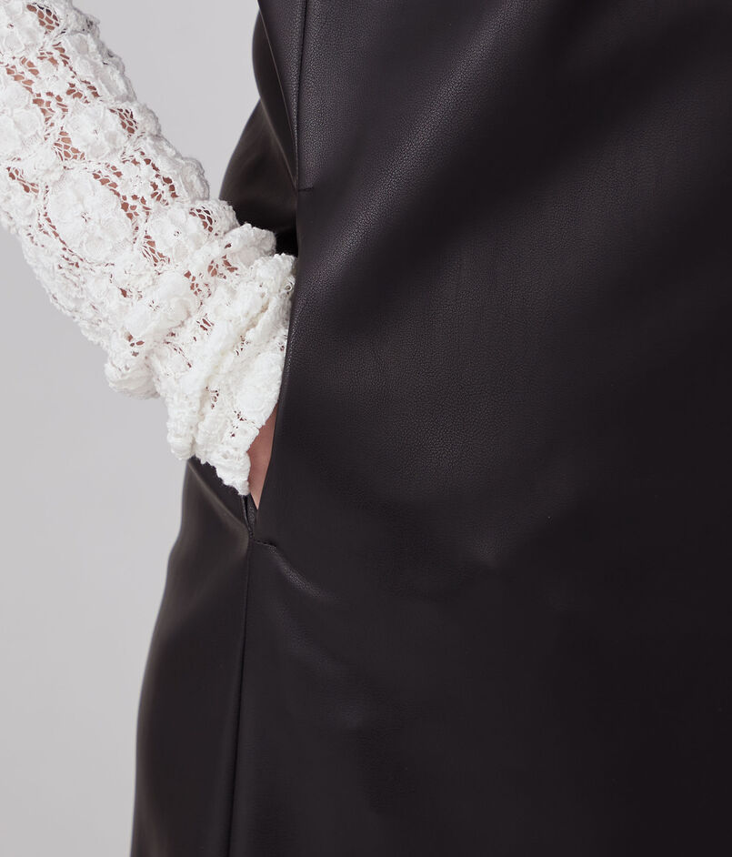 重くなりがちな生地感ながら、フロントに大胆なスリットを入れることで軽やかさをプラス。