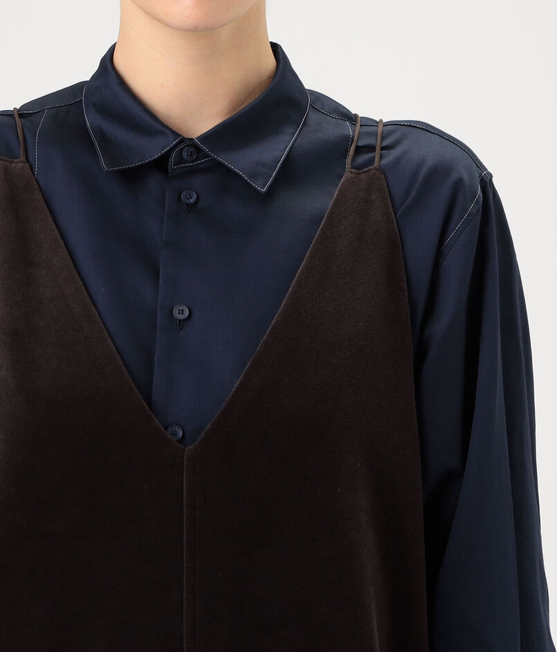 シンプルですっきりとしたシルエットに、ダブルストラップやバッククロスのデザインが効いた一枚。