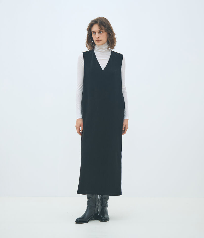 ワンピースはすとんと落ちるストレートシルエットですっきりとお召しいただける一着。