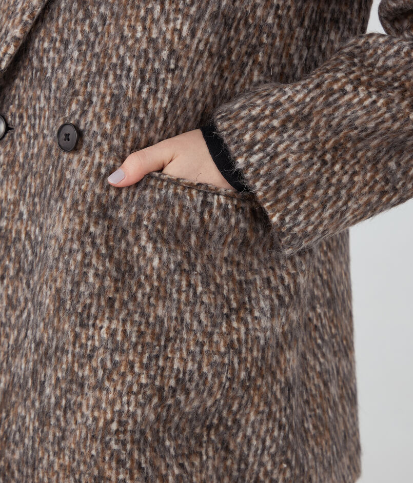 襟元に配したボタンを留めればメンズライクなスタイリングもお楽しみいただけます。