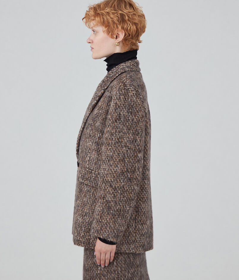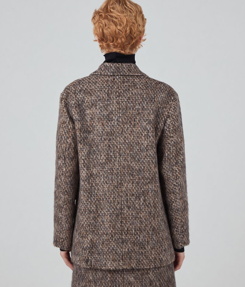 複数のカラーのウールとモヘヤをブレンドし丁寧に織り上げ、空気を含んだエアリーな表情でムードを感じていただけるシリーズ。