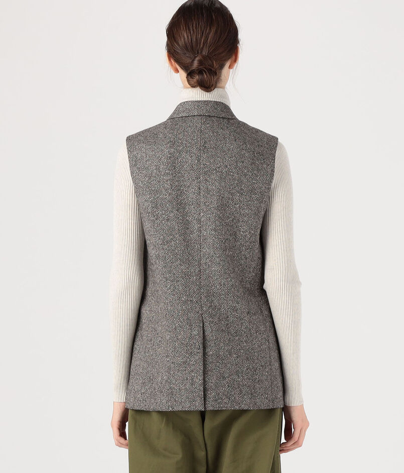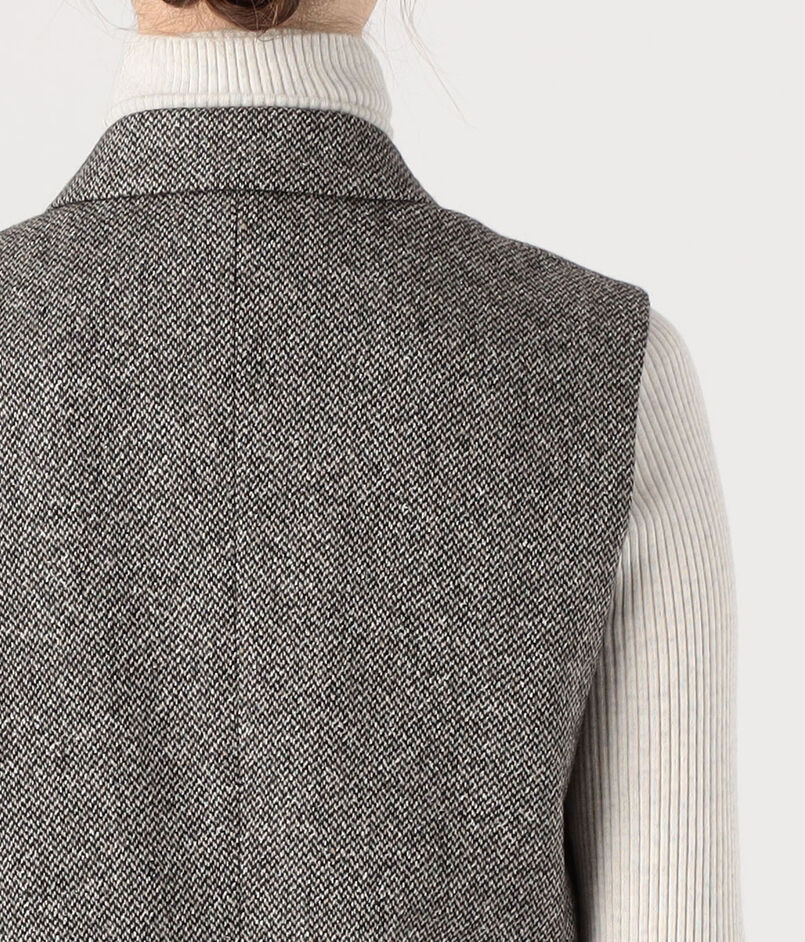 ツイードならではの凹凸のある表面感で奥行きのある表情に仕上げたジレ。