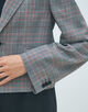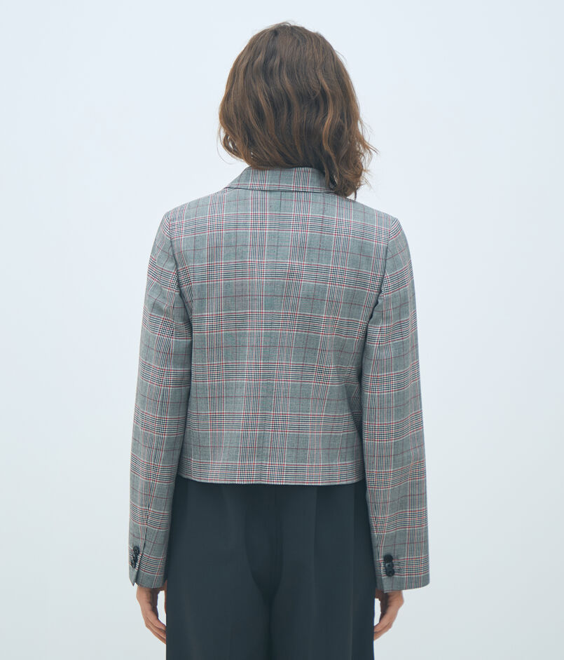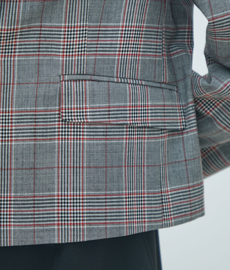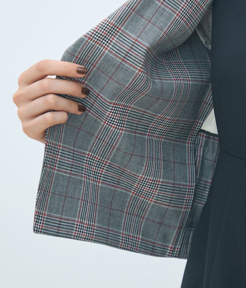 温かみと膨らみのあるウール糸に、肌触りの良いセルロース繊維を融合させた先染めチェック素材を使用したシリーズ。