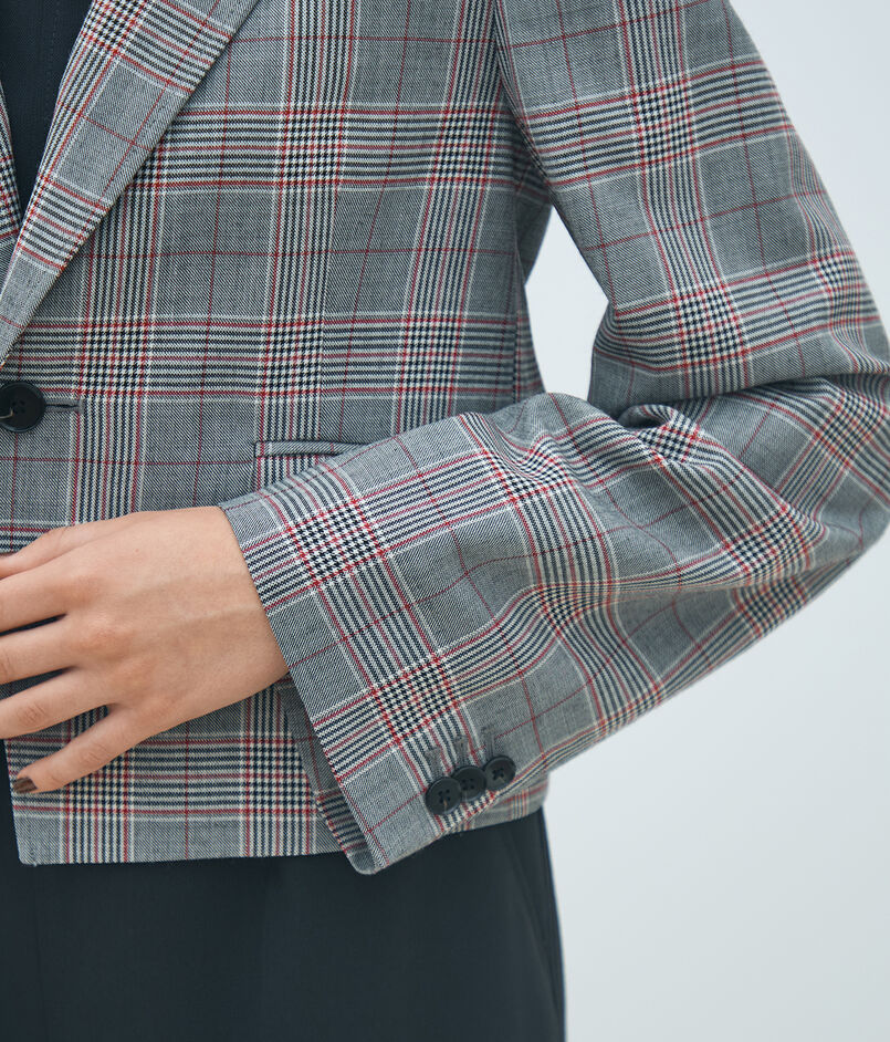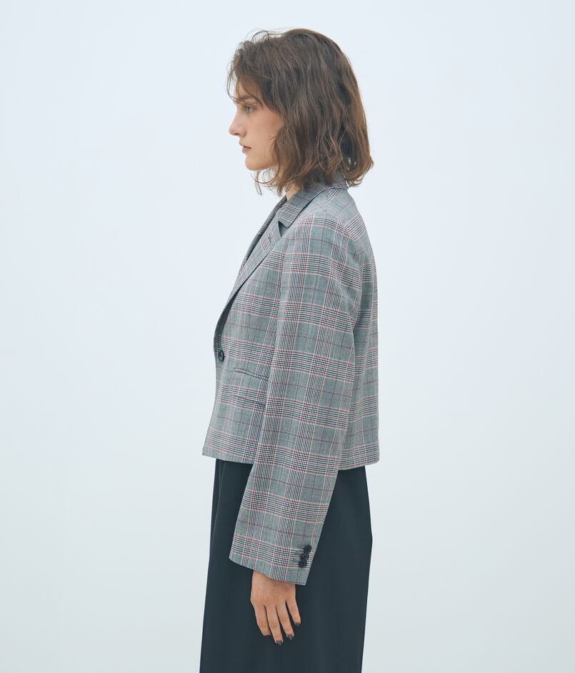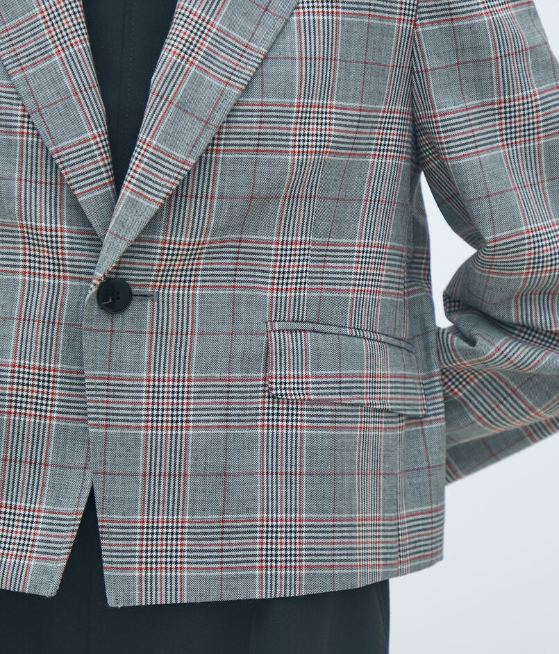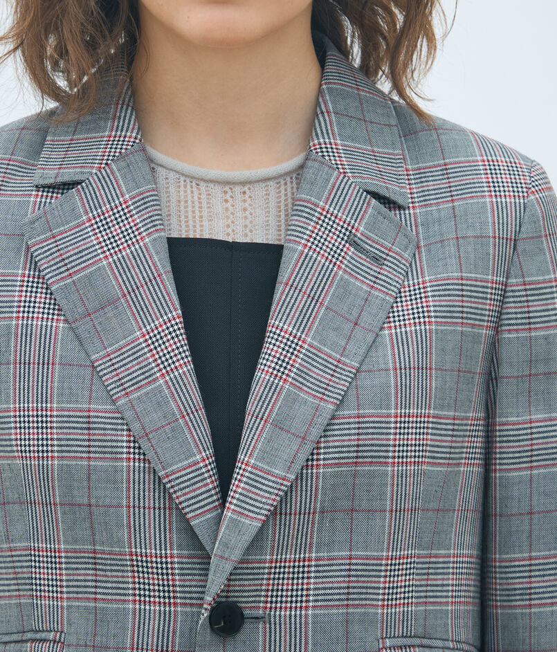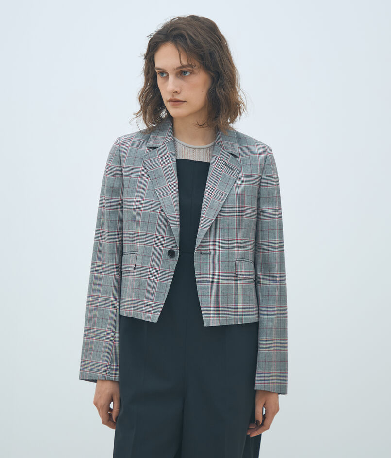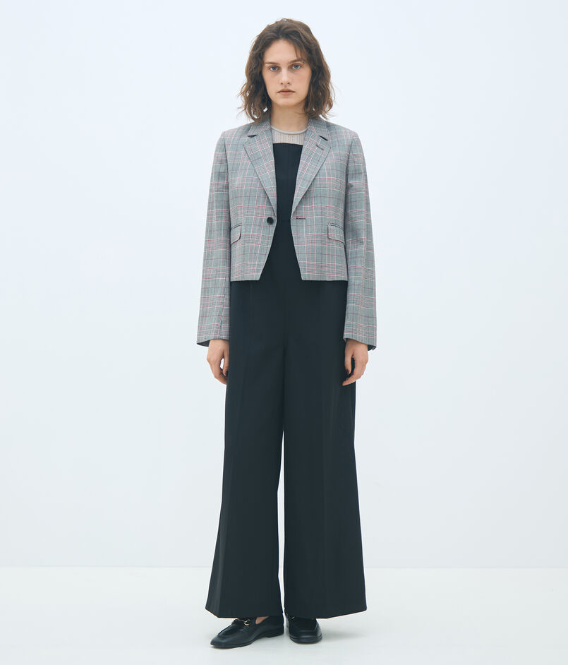 シングルブレストジャケットはシャープさのある身頃に対し、袖はワイドめにすることでメリハリをつけた一着。