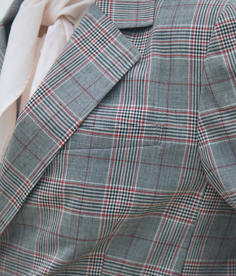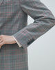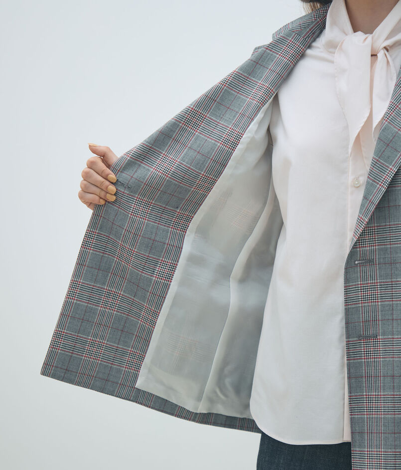 温かみと膨らみのあるウール糸に、肌触りの良いセルロース繊維を融合させた先染めチェック素材を使用したシリーズ。