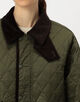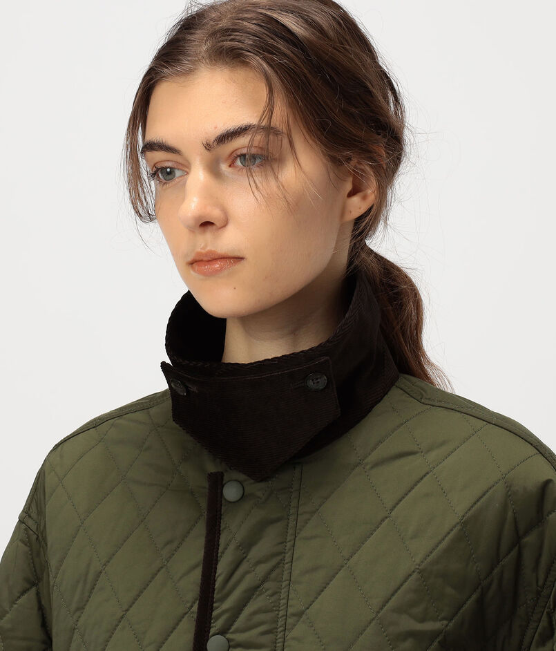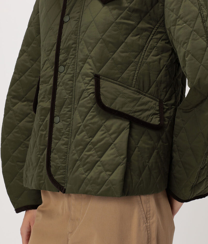細番手のポリエステル糸を使用したキルティング素材のブルゾン。