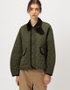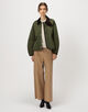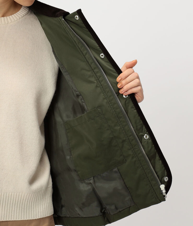 襟やフロント、ポケットなどに施したコーデュロイのパイピングディテールでアクセントをつけています。