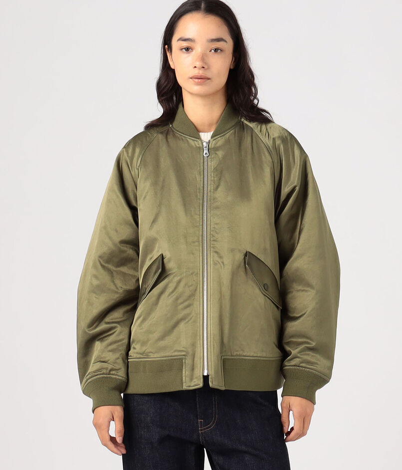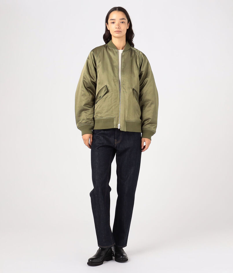 コットンとレーヨンを混紡し織り上げた、しなやかな落ち感と控えめな光沢が魅力のモールスキン素材を使用したMA-1。