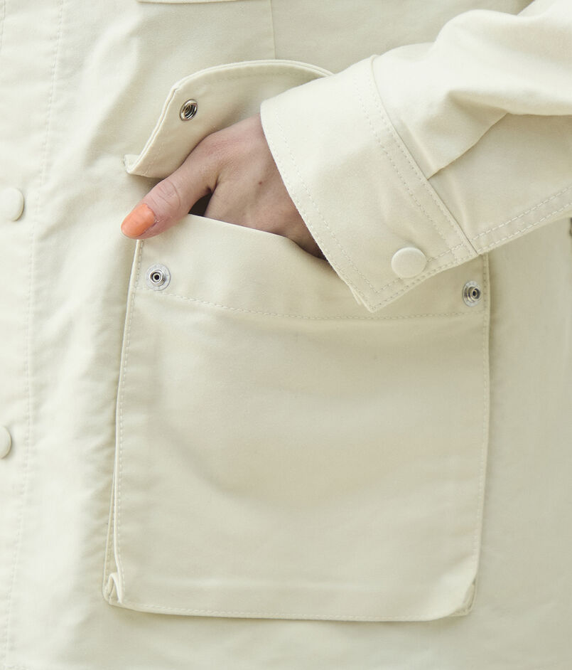 高密度に織り上げたモールスキン素材に、製品洗いを施すことで馴染みの良い風合いに仕上げたジャケット。