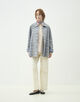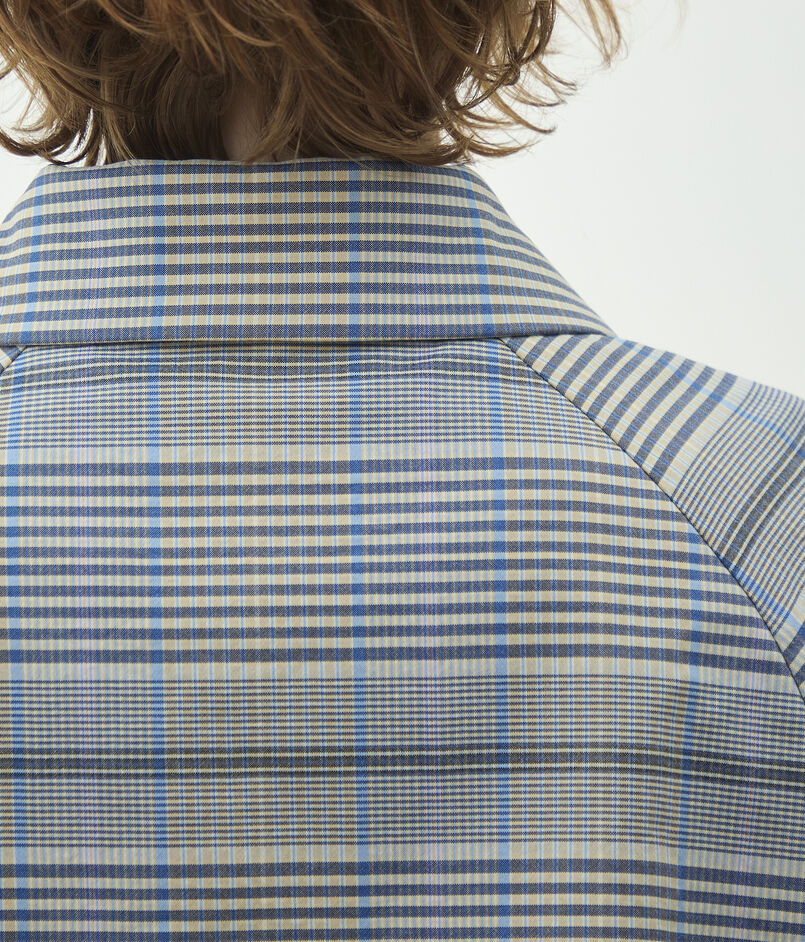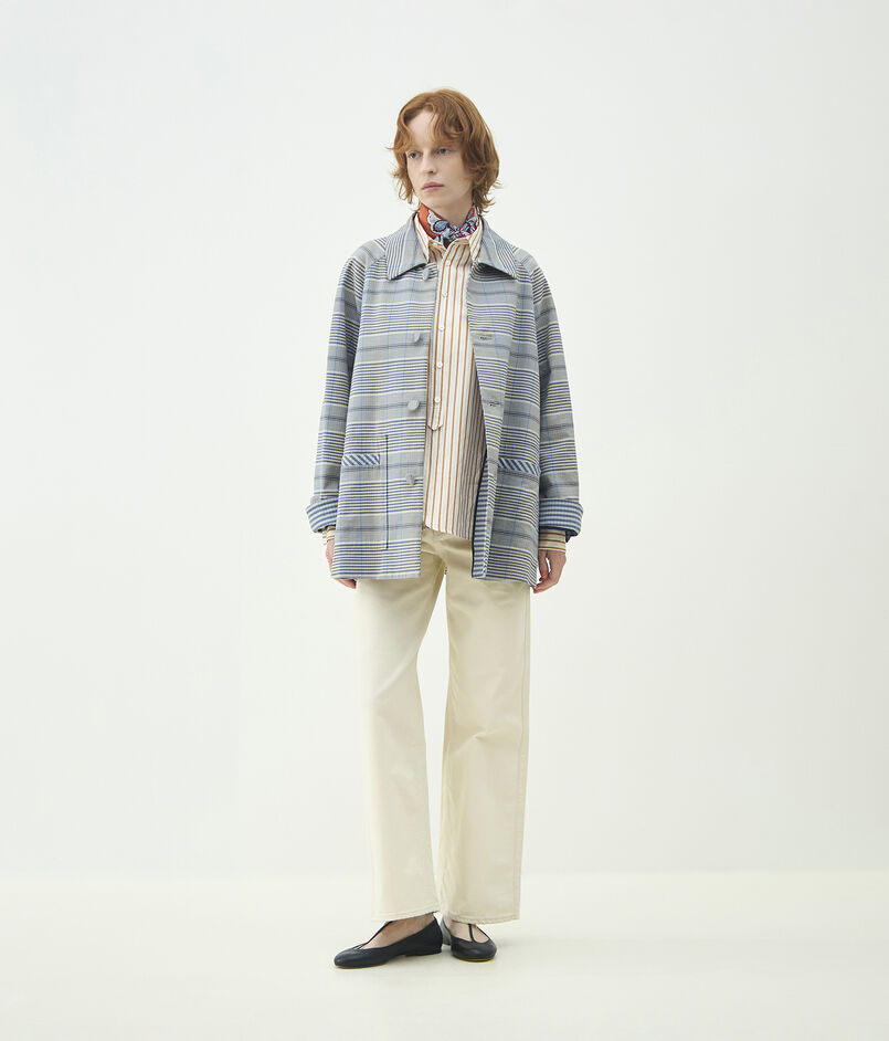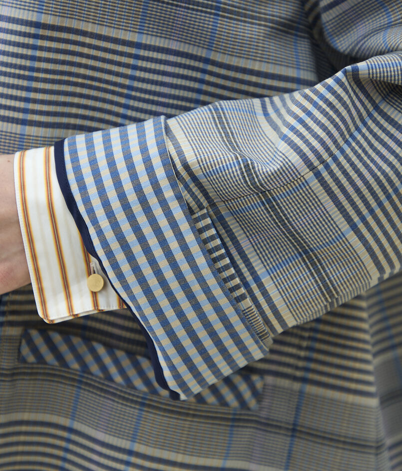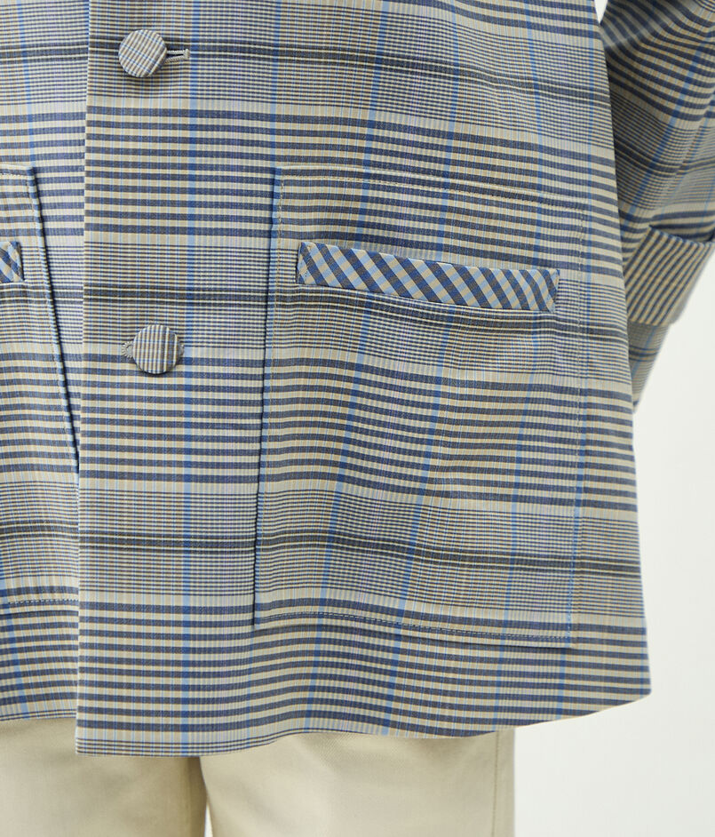 裏地のない仕様にして軽やかに羽織れるだけでなく、ギンガムチェックがちらりと見えることで中の見た目まで楽しめるようにしています。
