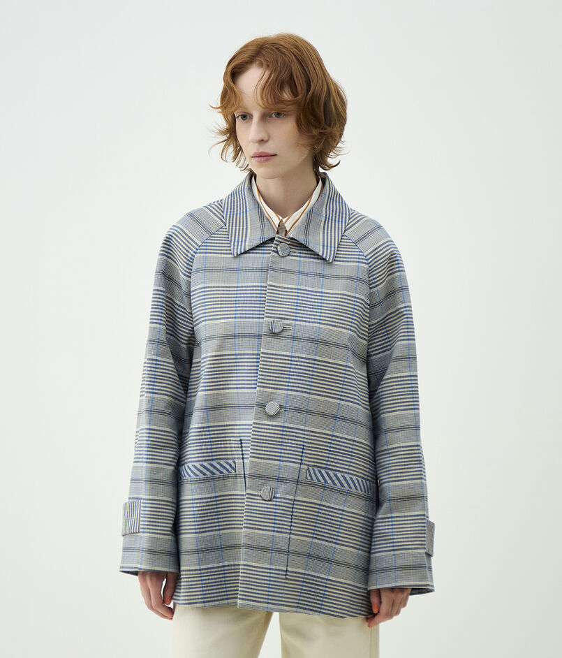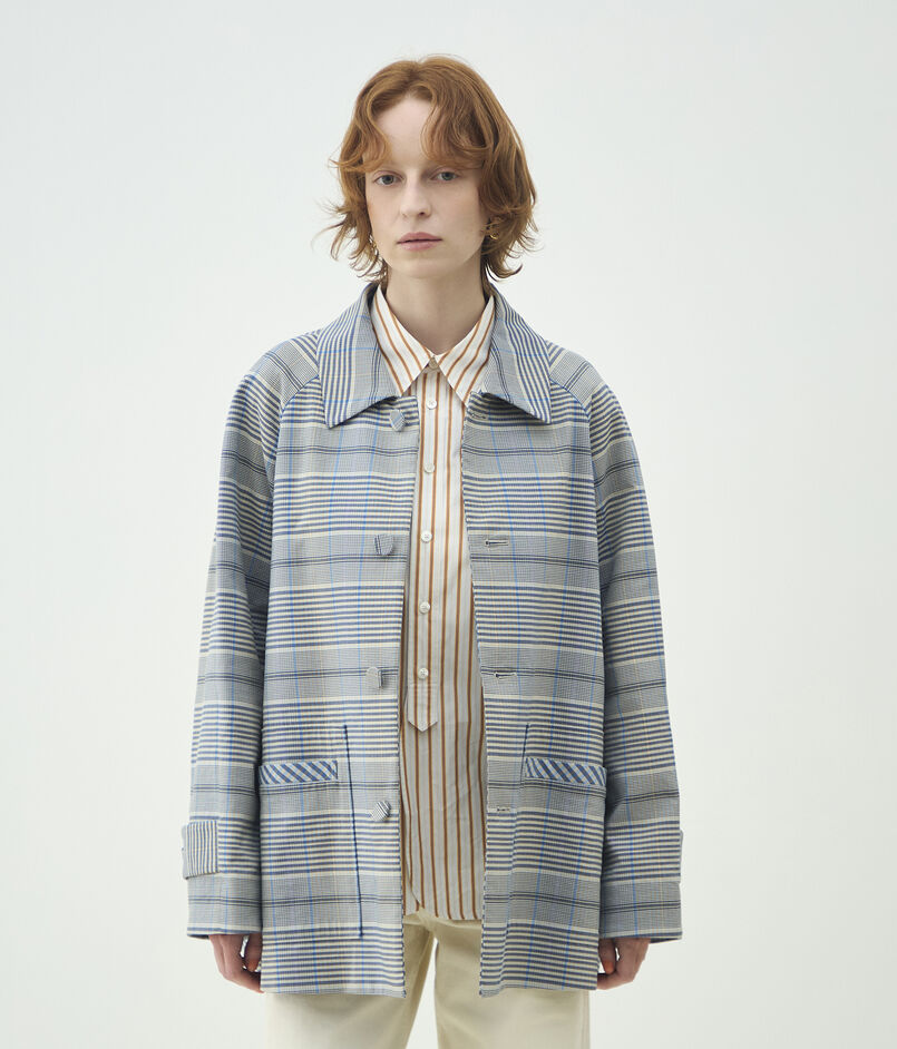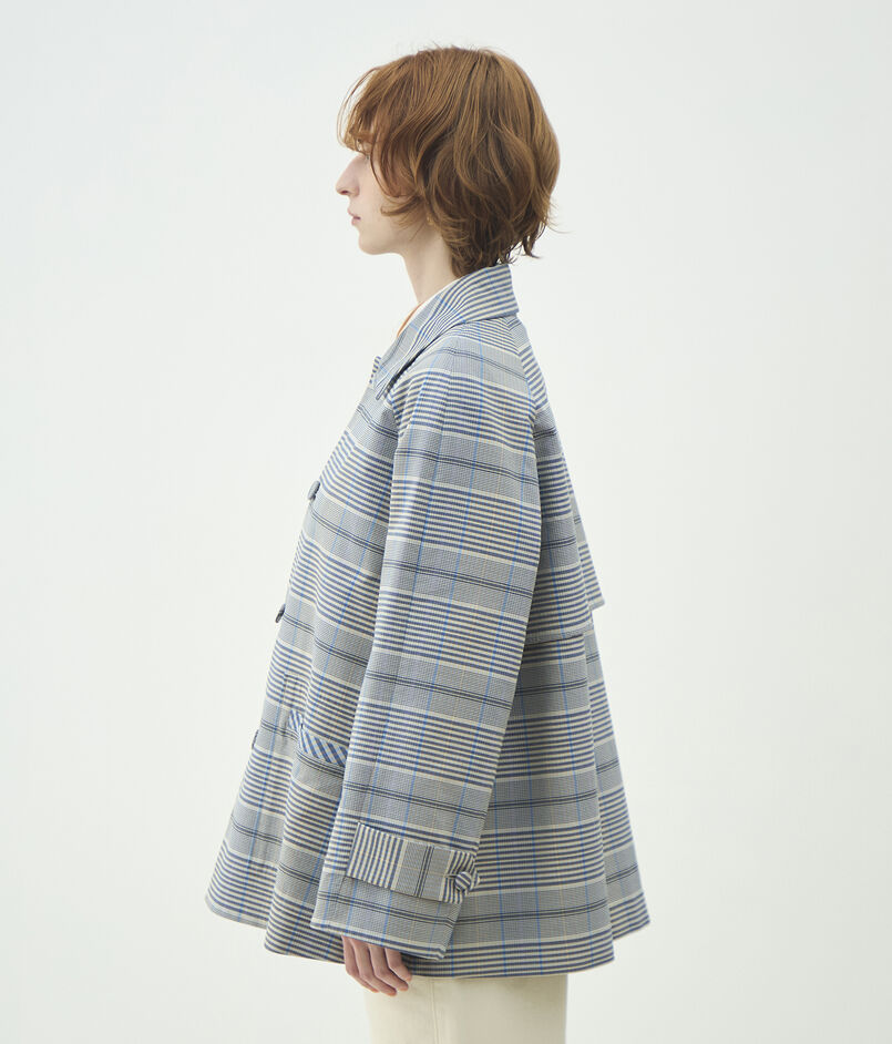 トゥーサイドチェック ステンカラーショートコート