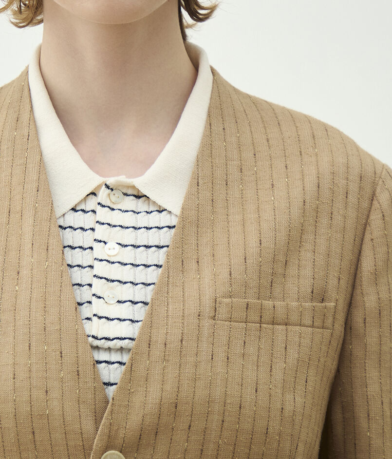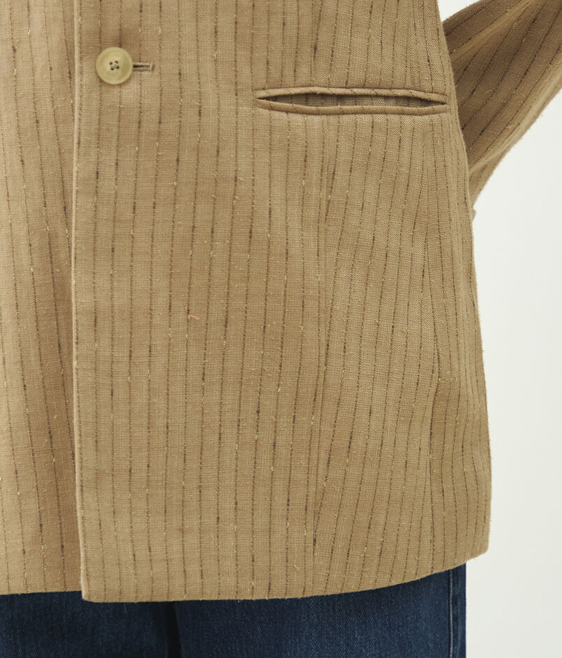 カーディガンのような雰囲気ながら、襟まわりや肩はしっかりと作り込んでいるので夏のジャケットとして活躍してくれる汎用性の高いアイテム。