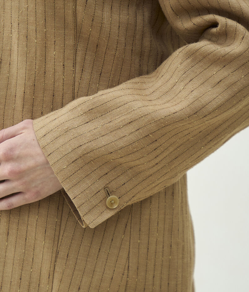 リラックスして羽織れるようデザインを削ぎ落とし、袖は捲りやすいようあえて一つボタンで仕上げています。
