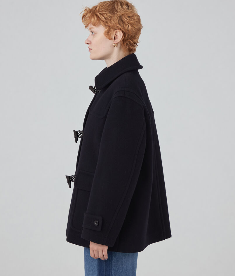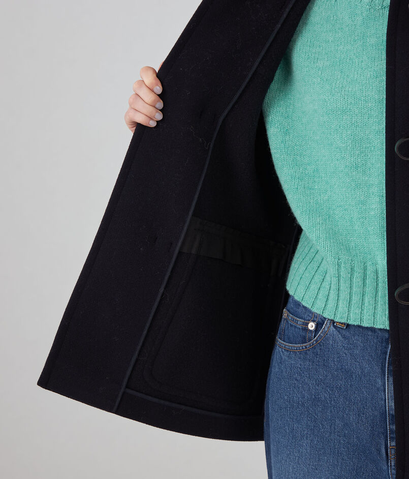 良質なウール糸を使用し密に織り上げたメルトン素材のショートコート。