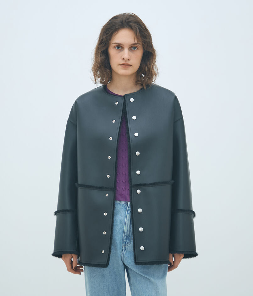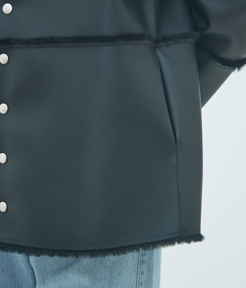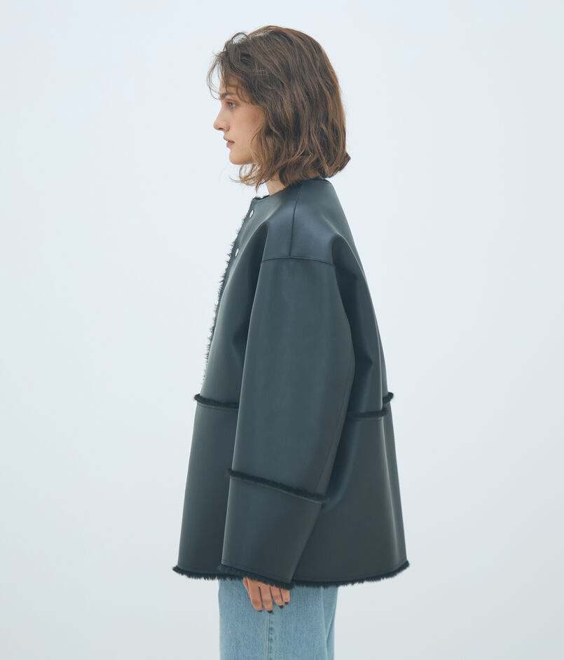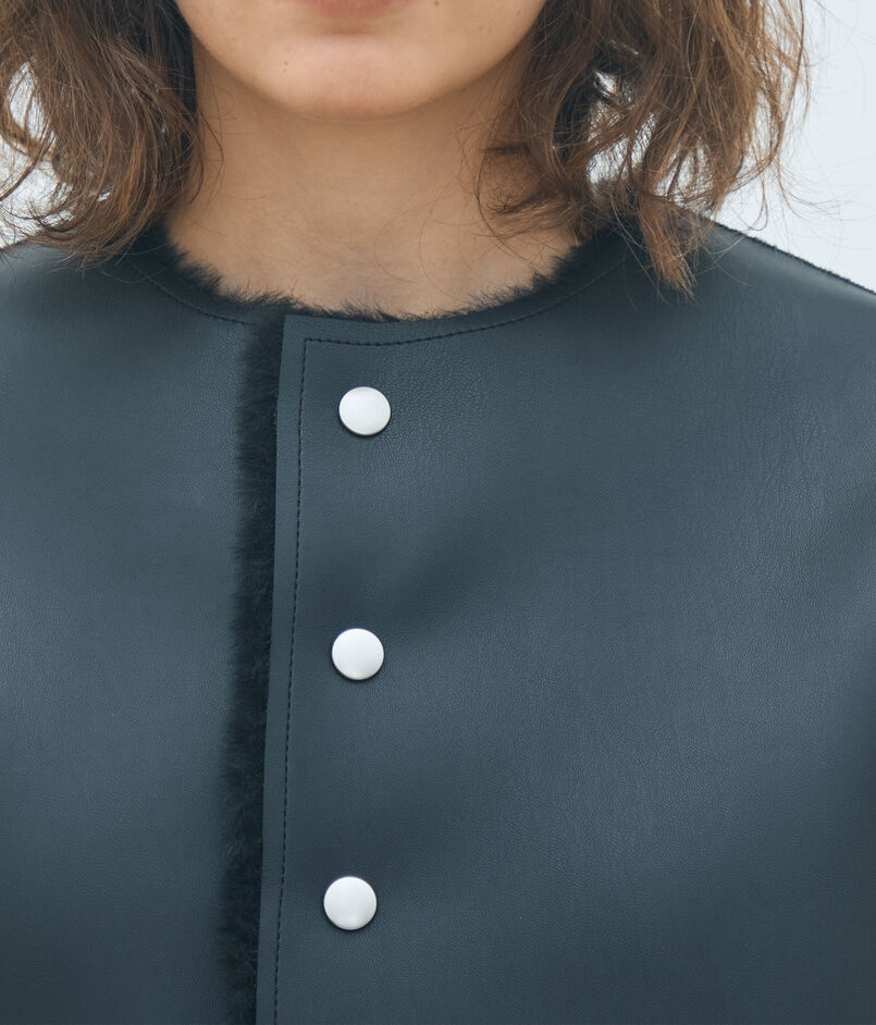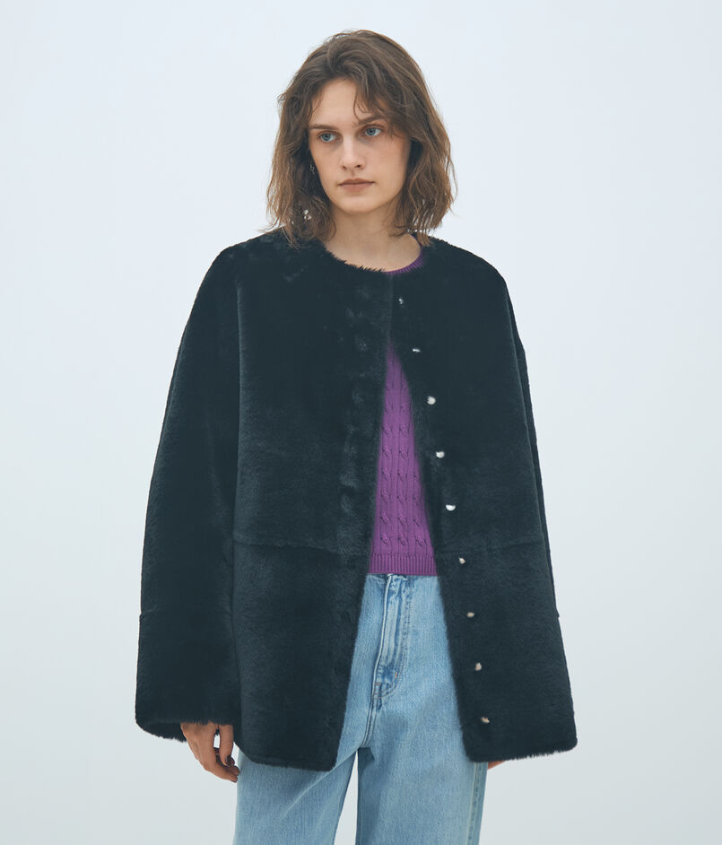ほど良いボリューム感とソフトなタッチが特徴のフェイクムートン素材を使用したショートコート。