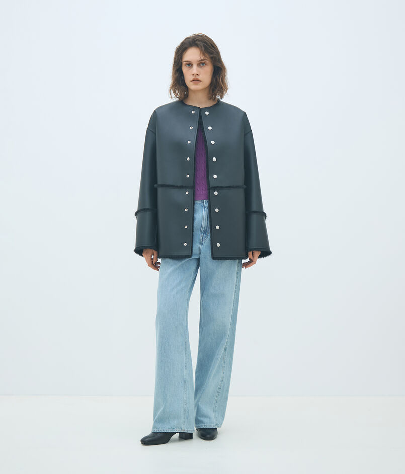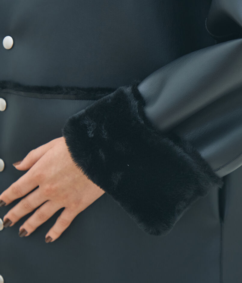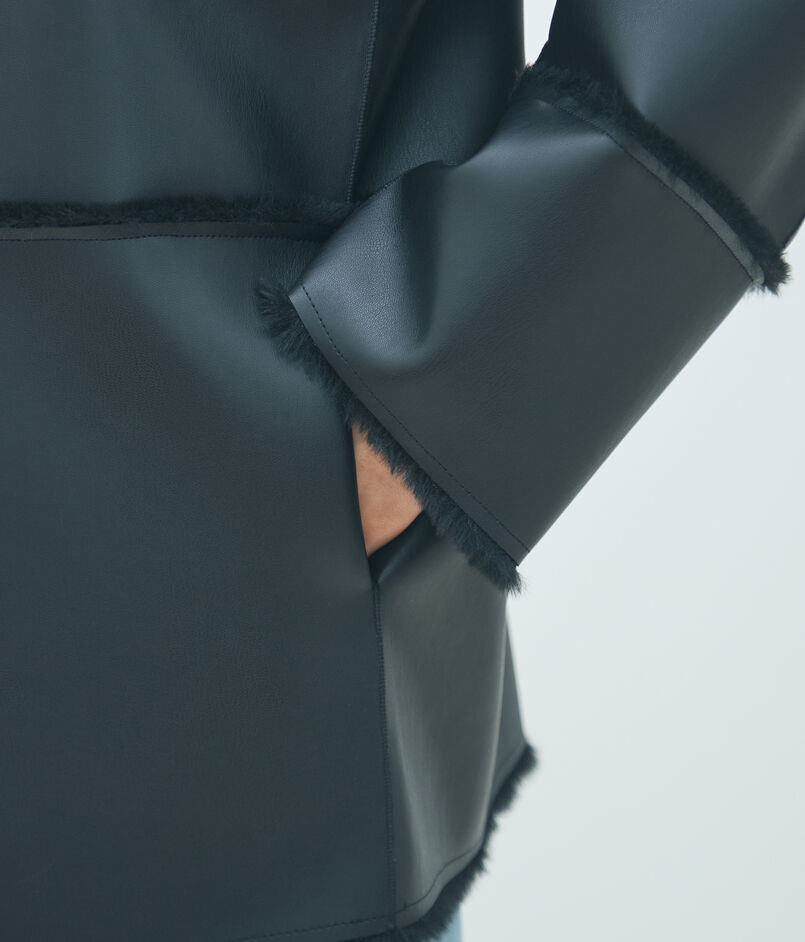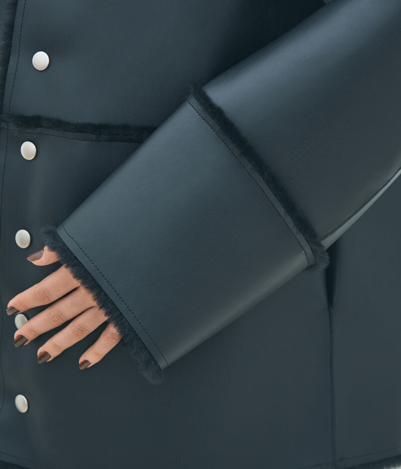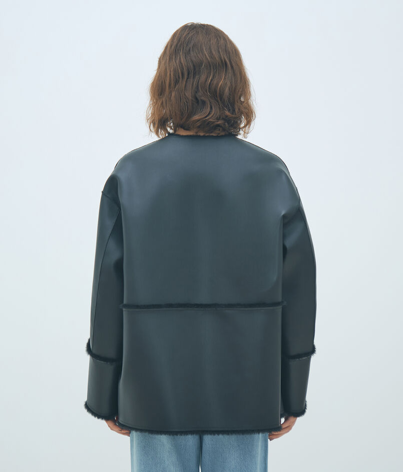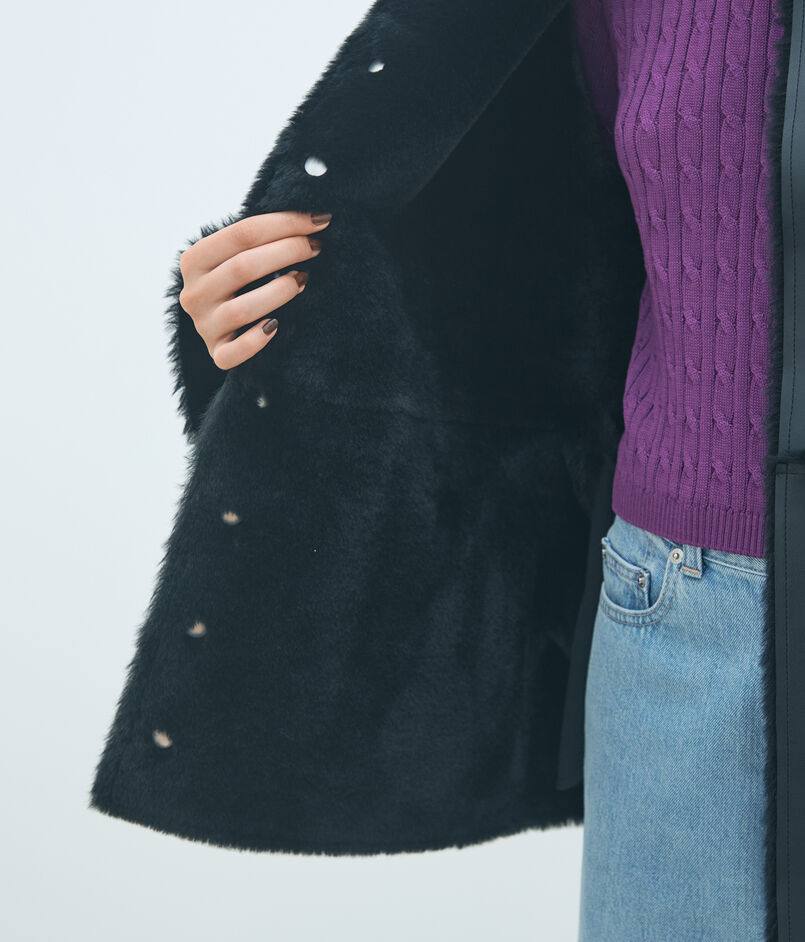 ほど良いボリューム感とソフトなタッチが特徴のフェイクムートン素材を使用したショートコート。