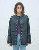 フロントに連ねたメタルボタンがシャープなアクセントになっています。