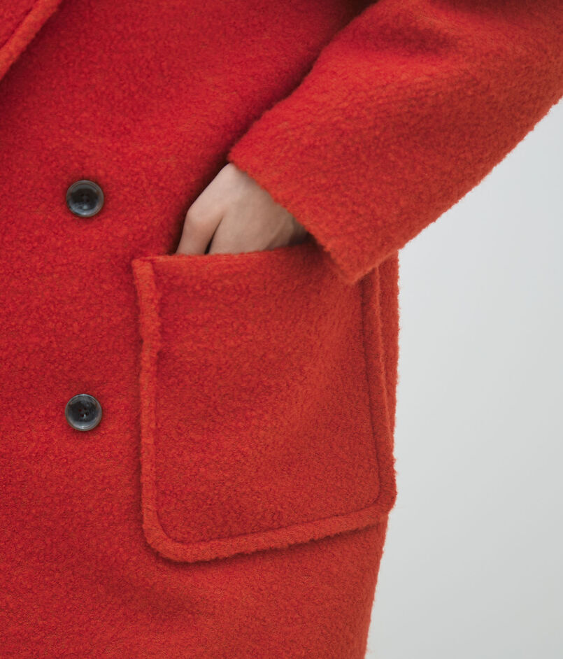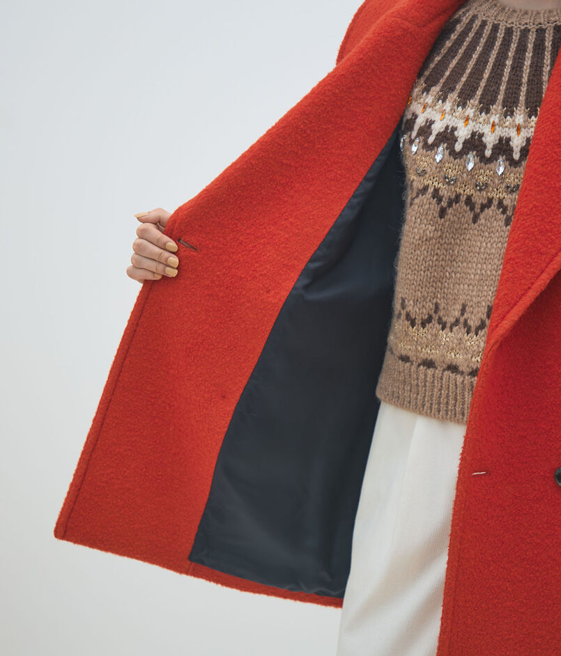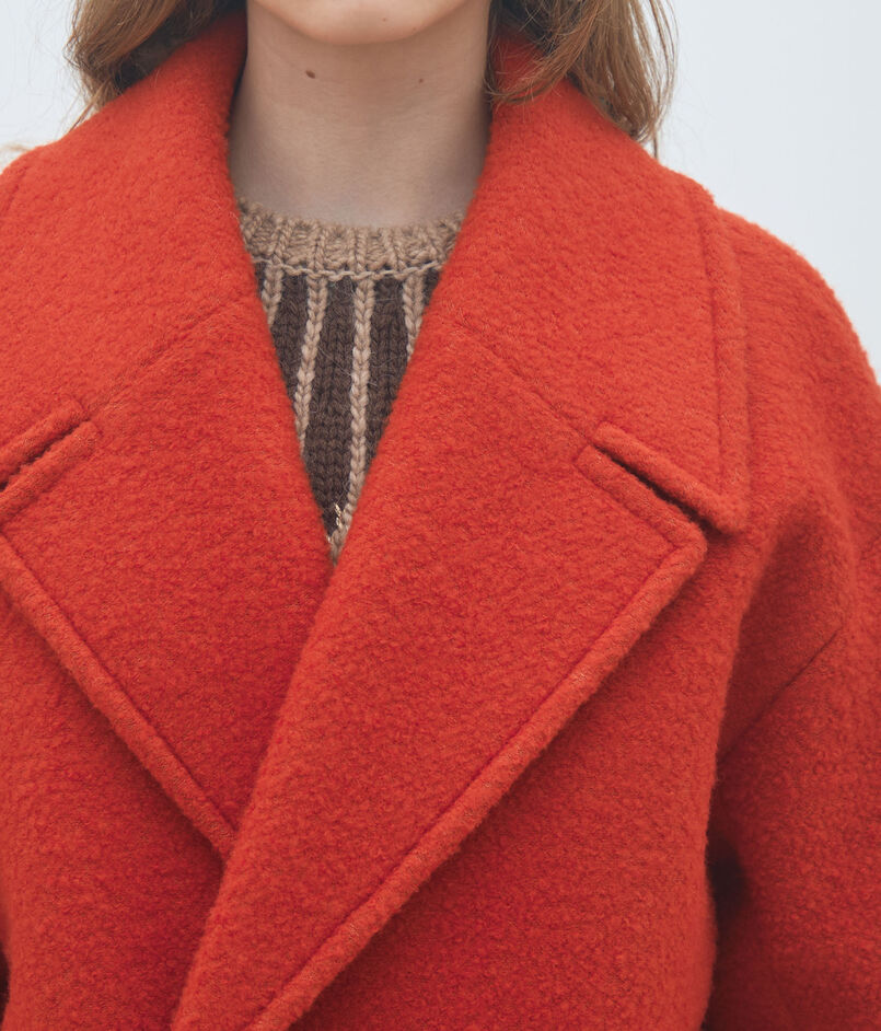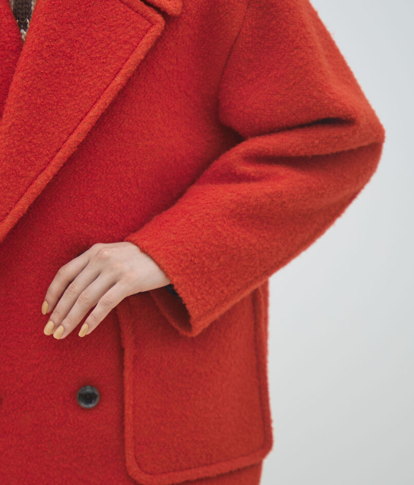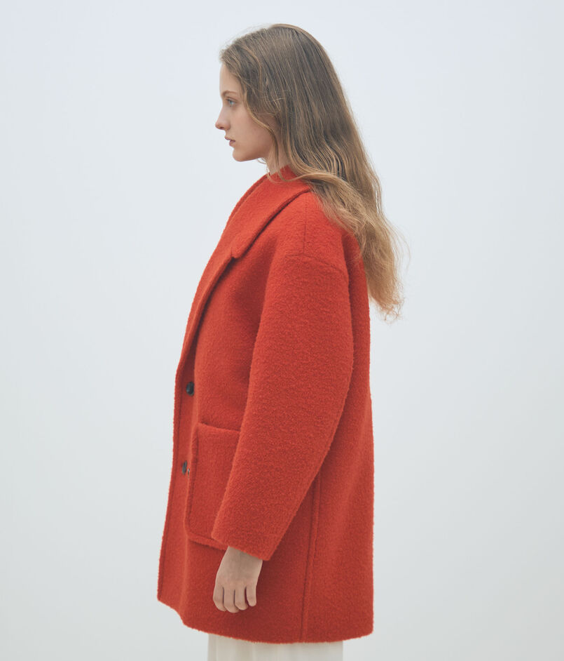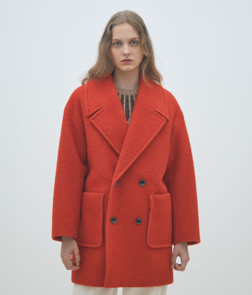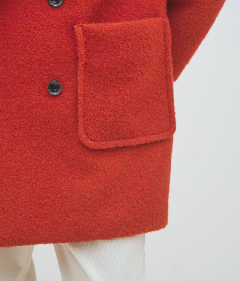 ウールのブークレー糸で織り上げることで凹凸を出して表情感を持たせたコート。