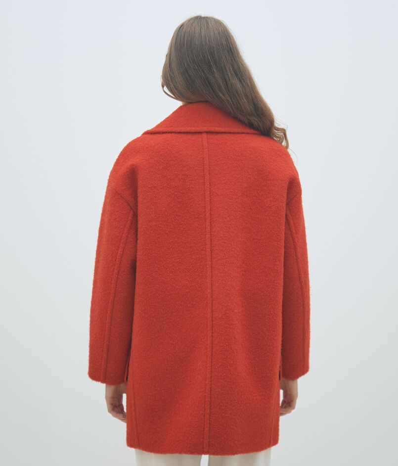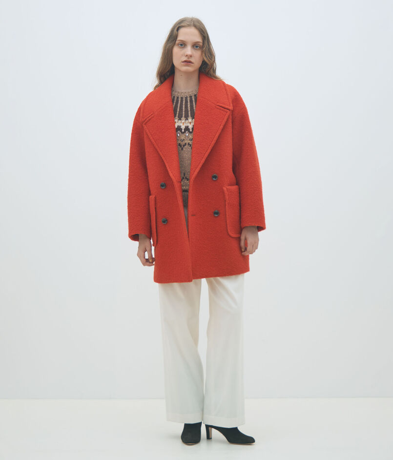 ウールのブークレー糸で織り上げることで凹凸を出して表情感を持たせたコート。