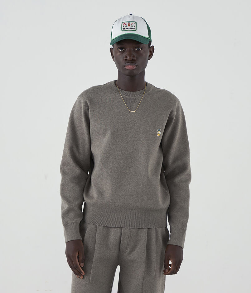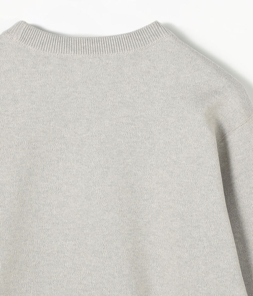 色味と風合いの良さが際立つメランジコットンと、ストレッチ性のあるポリエステルをダブル組織で編み上げたクループルオーバーニット。