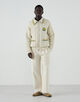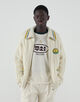 胸元には、インド製の繊細な手刺繍ワッペンがあしらわれた贅沢な仕様。ジップを上まで閉じてスタンドカラーとして着ても、喉元まで下げて襟元の分量をアレンジしても様になるデザインです。