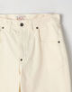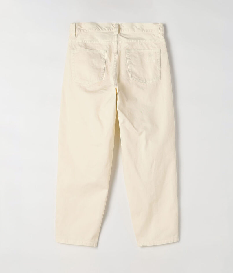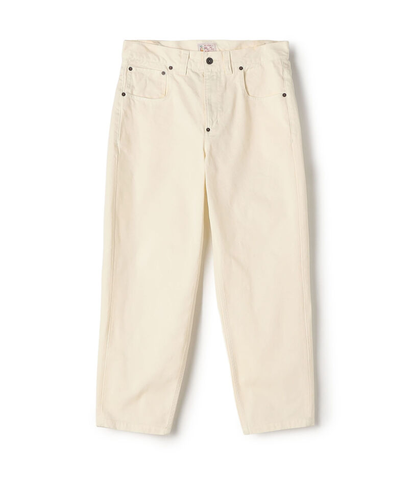 味わい深い表情を持つ5ポケットパンツ。コンパクト糸を高密度に織り上げた、しなやかでタフなテクスチャー。毛羽立ちを抑えたクリーンな素材に「製品染め」と「柔軟洗い」を施すことで、深みのあるアタリ感と、長年着込んだようなヴィンテージライクな風合いを引き出しました。一点ごとに異なる微細な表情が、既製品にはない独自の存在感を放ちます。