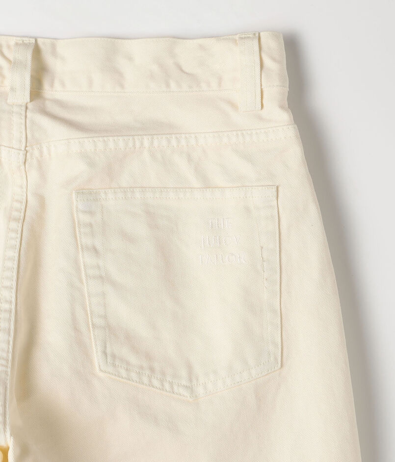 ヒップポケットには、〈THE JUICY TAILOR〉のワンポイント刺繍を入れ、洗練された佇まいの中に、クラフトマンシップと遊び心を加えています。