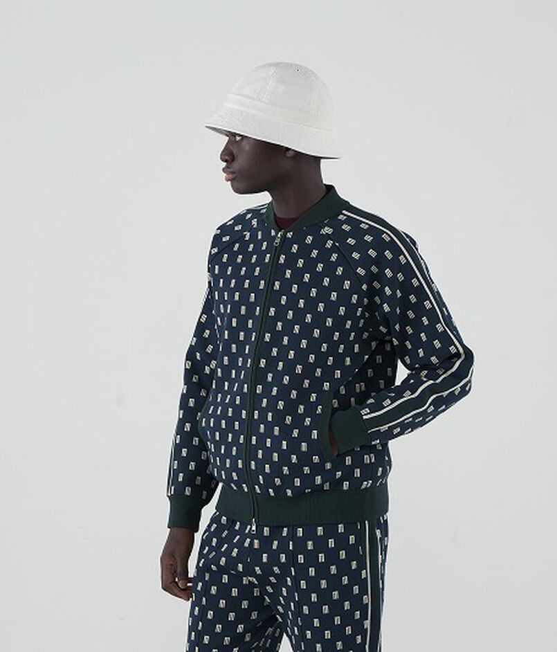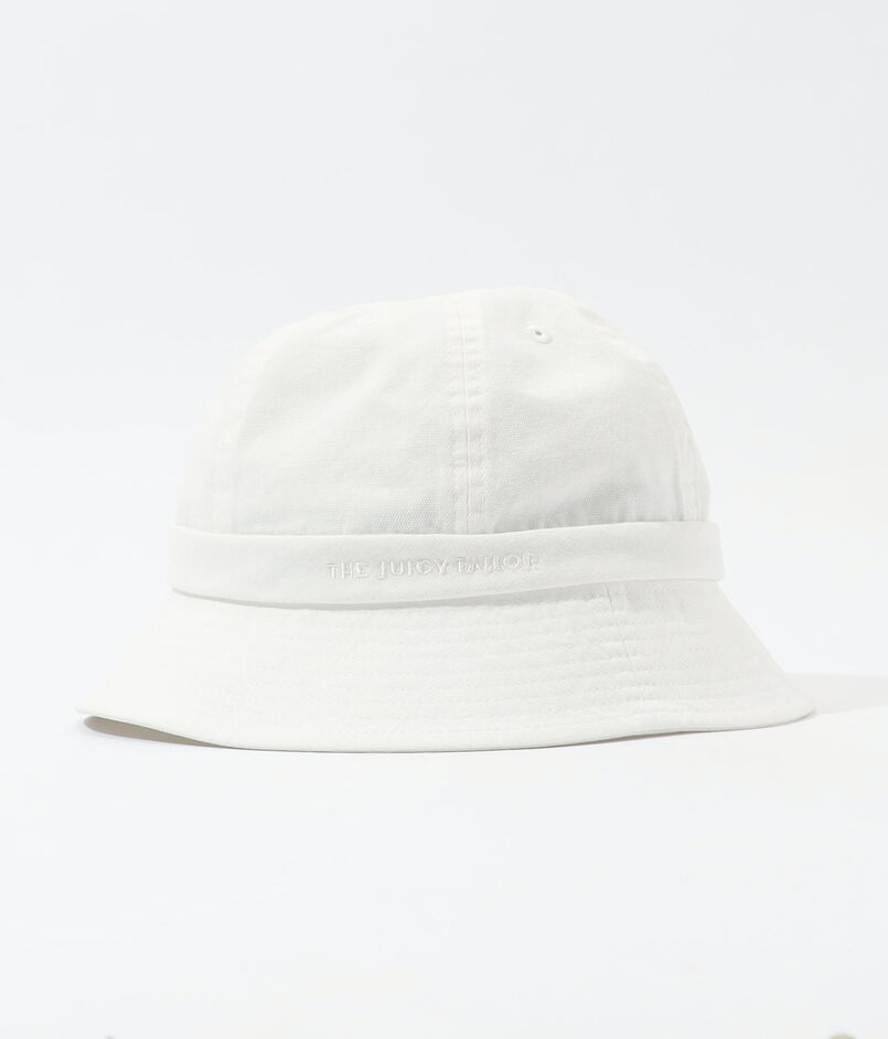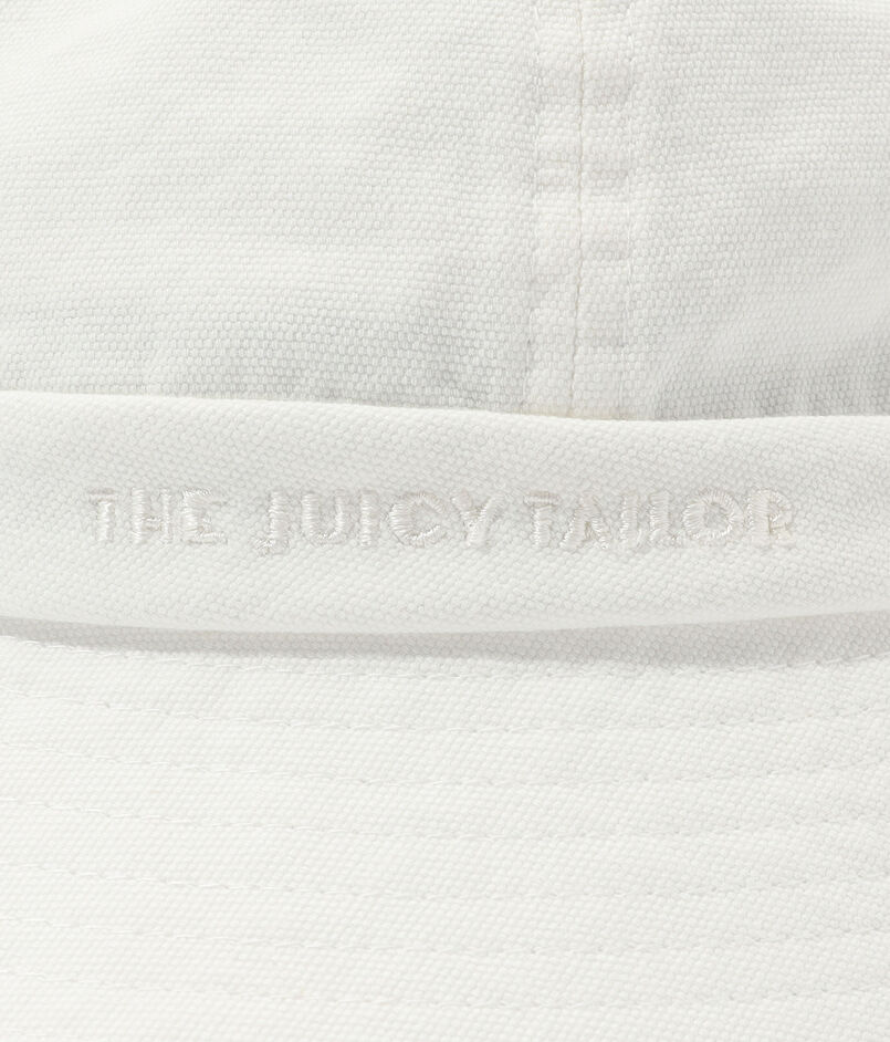 その物語に軽やかな彩りを添えるのは、〈THE JUICY TAILOR〉のロゴ刺繍が映えるオリジナルバケットハット。