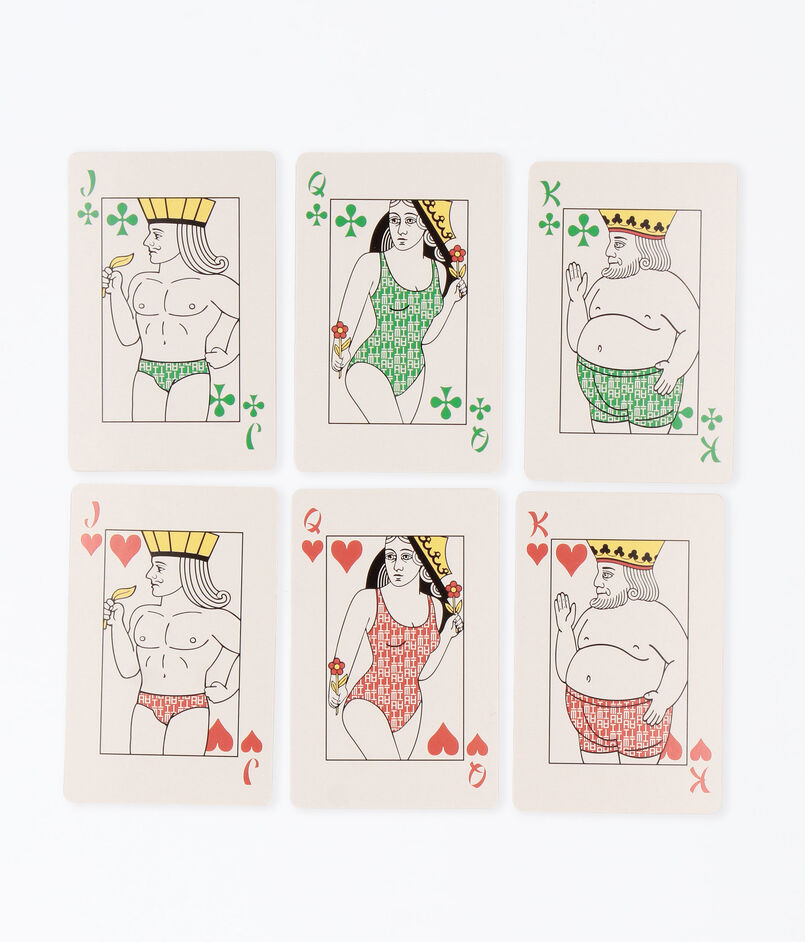 J(ジャック)、Q(クイーン)、K(キング)やJOKERの絵札には、夏・ビーチ・南国をイメージする〈Mai Tai〉のモノグラム水着を着用し、イメージカラーであるレッド・グリーン・イエローを使いカラフルに仕上げています。
