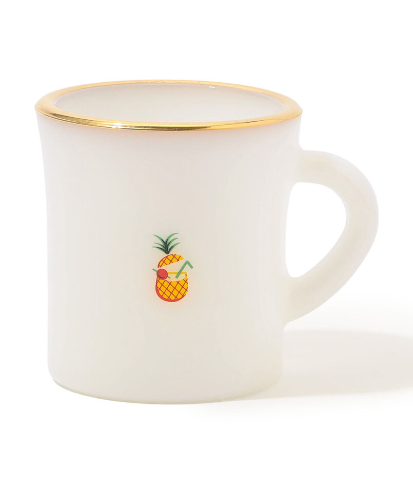アメリカのダイナーで使われているどっしりとしたマグに、〈Mai Tai〉のパイナップルを水転写という手法で熱を加えプリントしています。