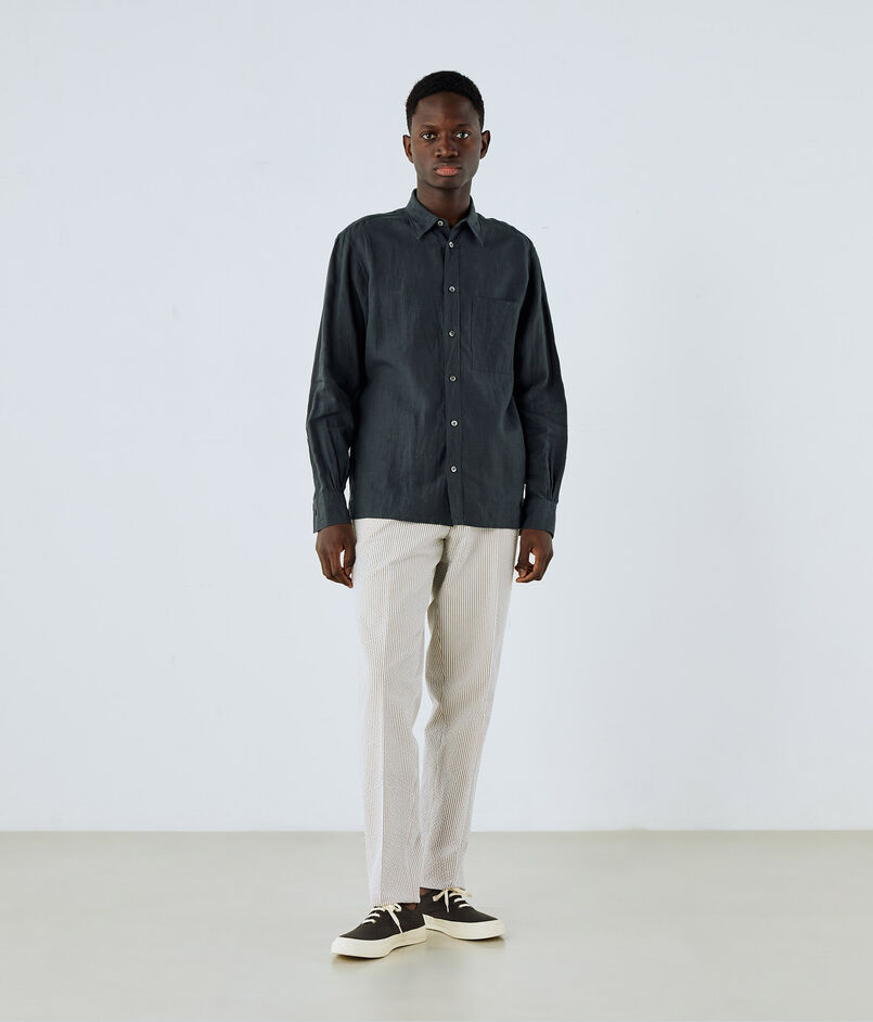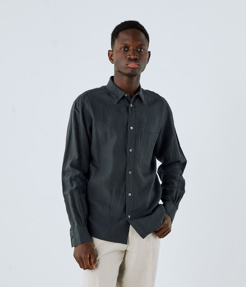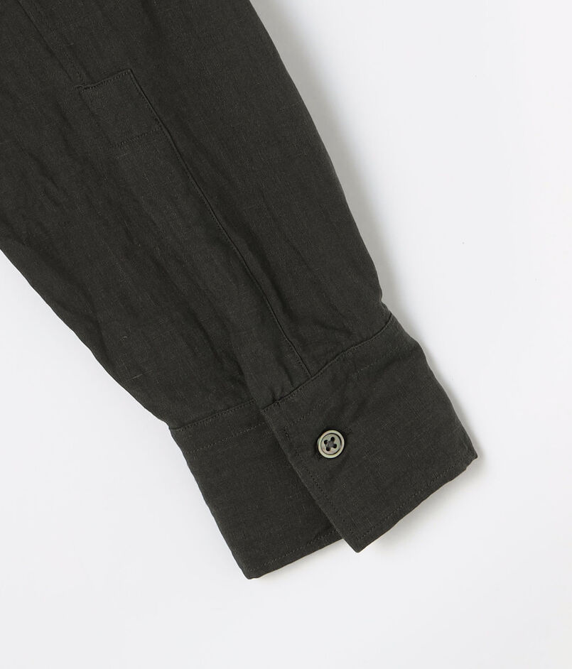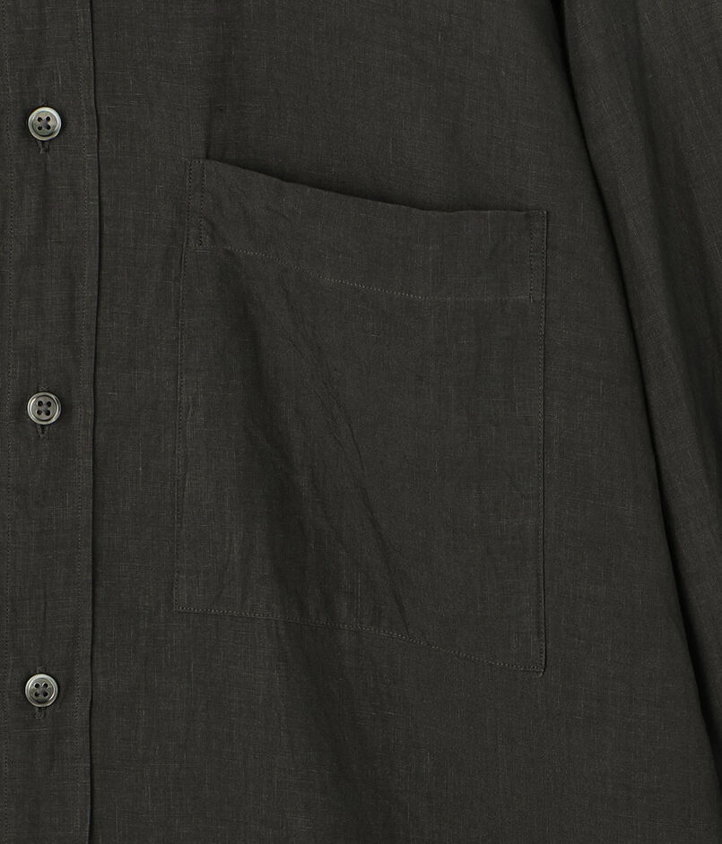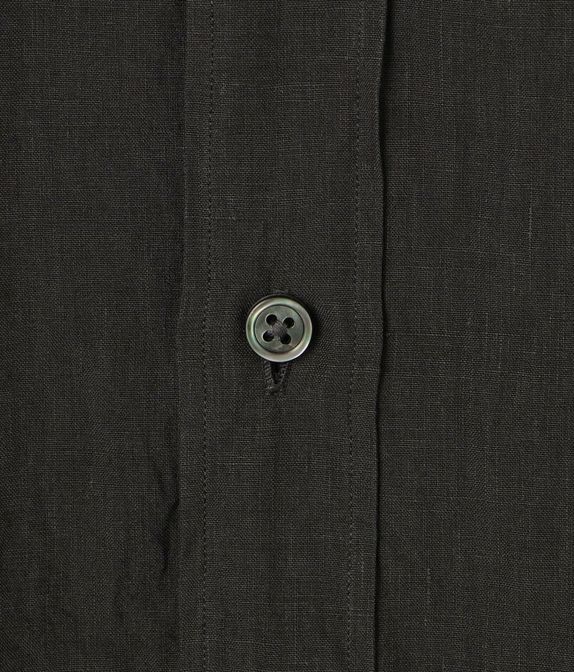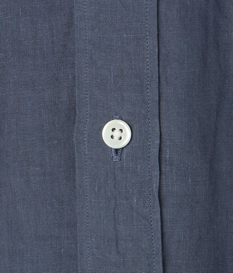 夏のリネンシャツとして最適解の1つ、80リネンをタンブラー仕上げにして洗いざらしの風合いを最大限に出したレギュラーカラーシャツ。