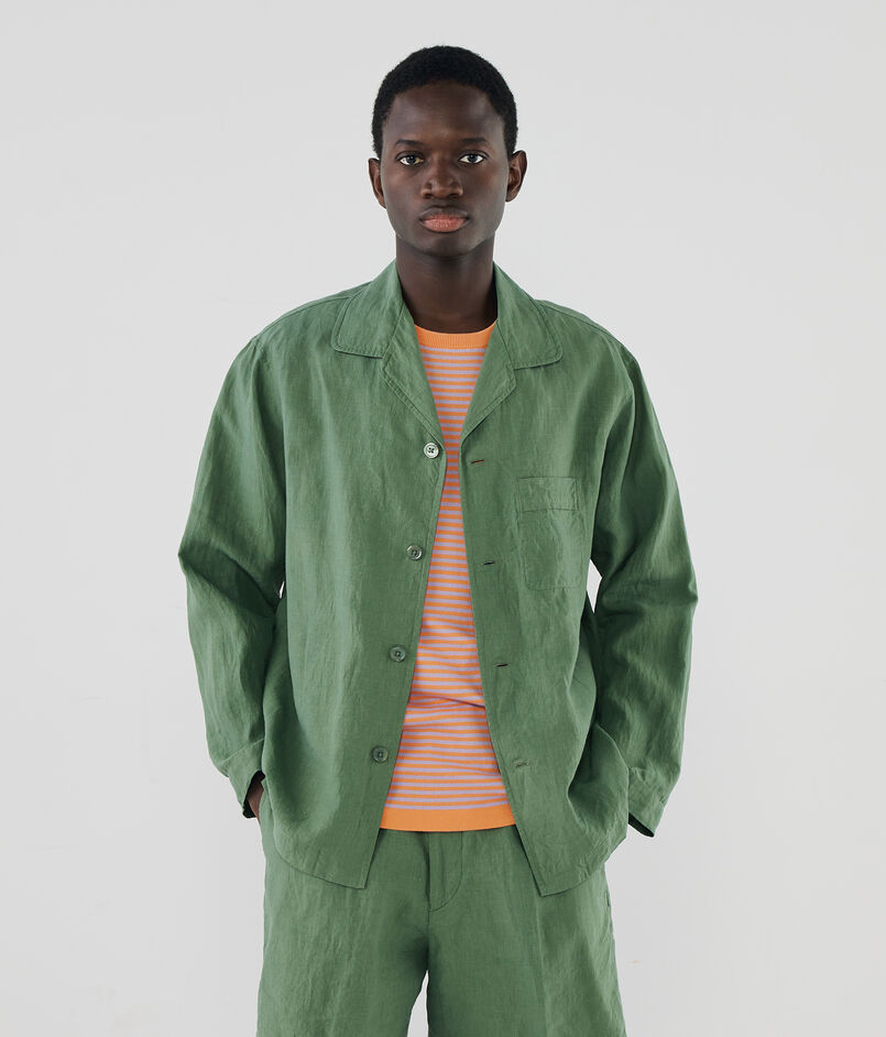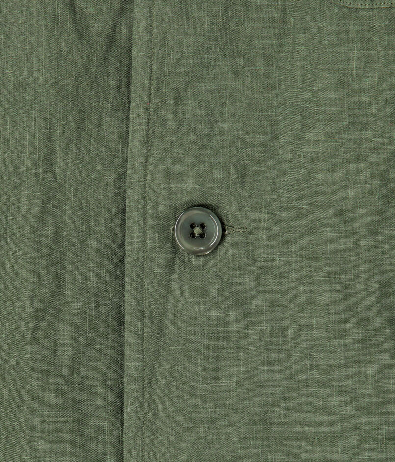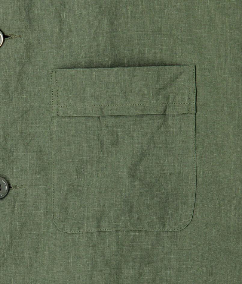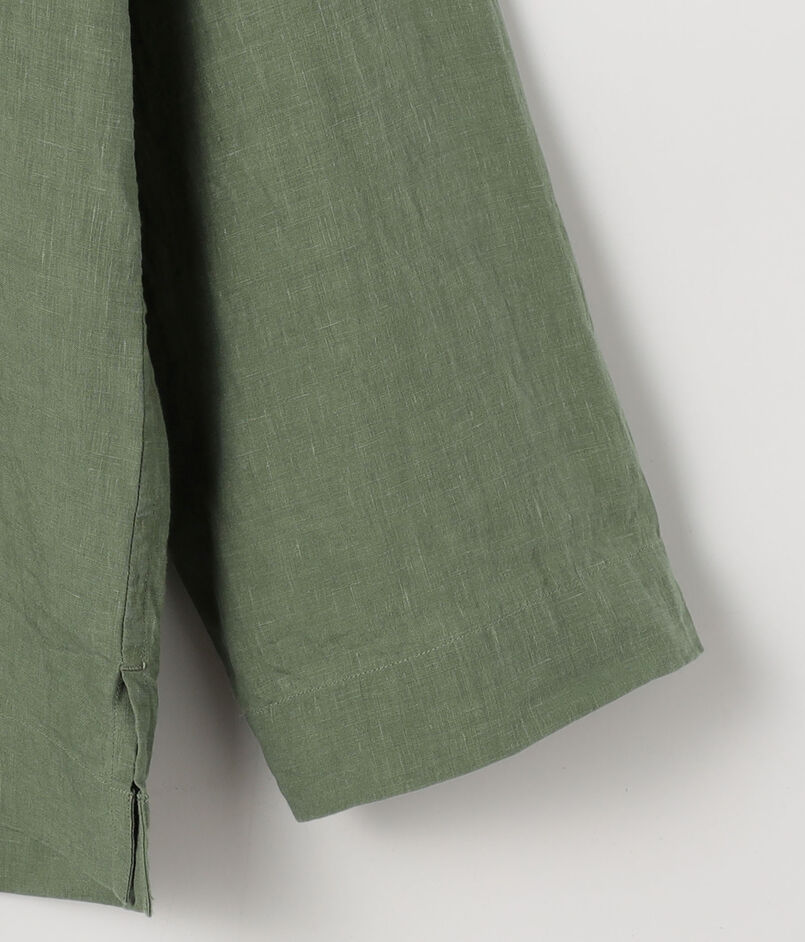 素材には、夏のリネンとして最適な80番手の極細糸を高密度に打ち込んだ、日本製の高品質なリネントロピカルを採用。仕上げにタンブラー加工を施すことで、洗いざらしのようなナチュラルな風合いを最大限に引き出しており、袖を通した瞬間から肌に馴染む心地よさを実感いただけます。