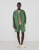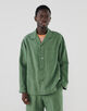 ヴィンテージのパジャマシャツをベースに、クラシックな襟元のニュアンスを活かしつつ、現代的なオーバーシャツへと再構築した新型のパジャマカラーオーバーシャツ。