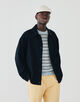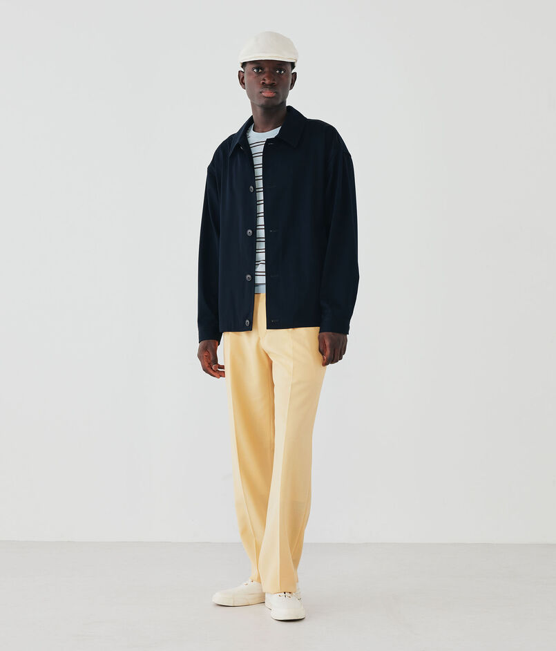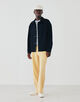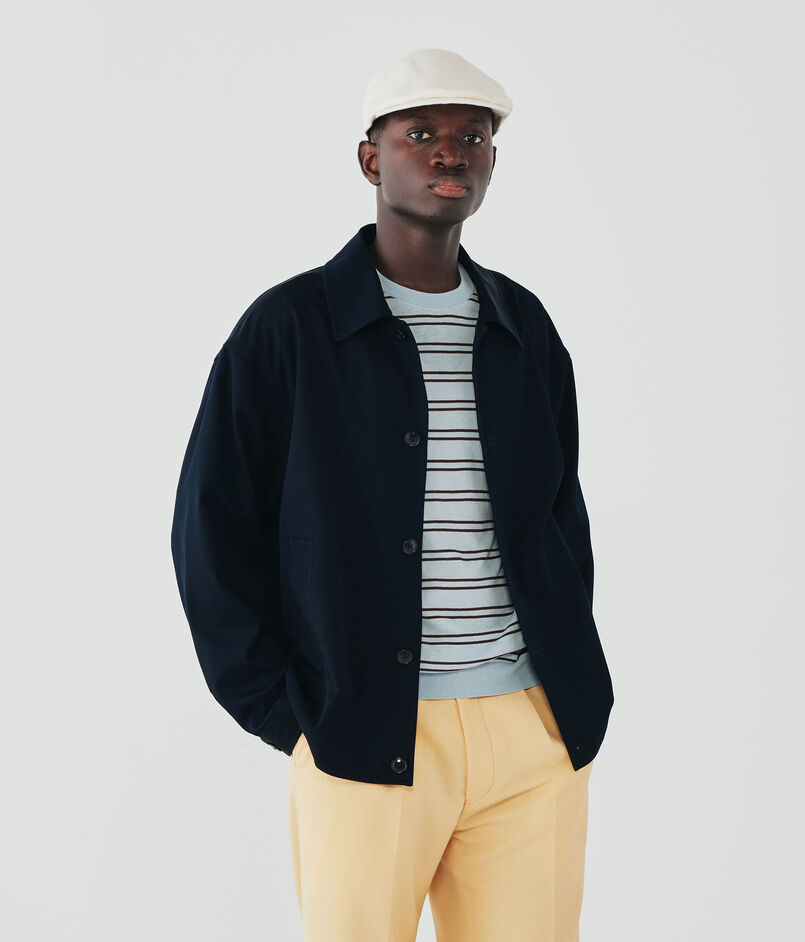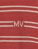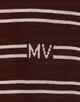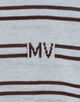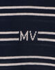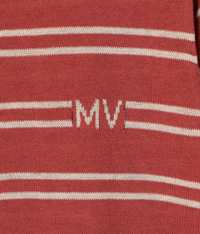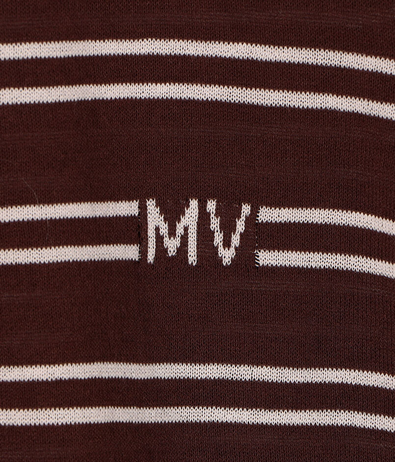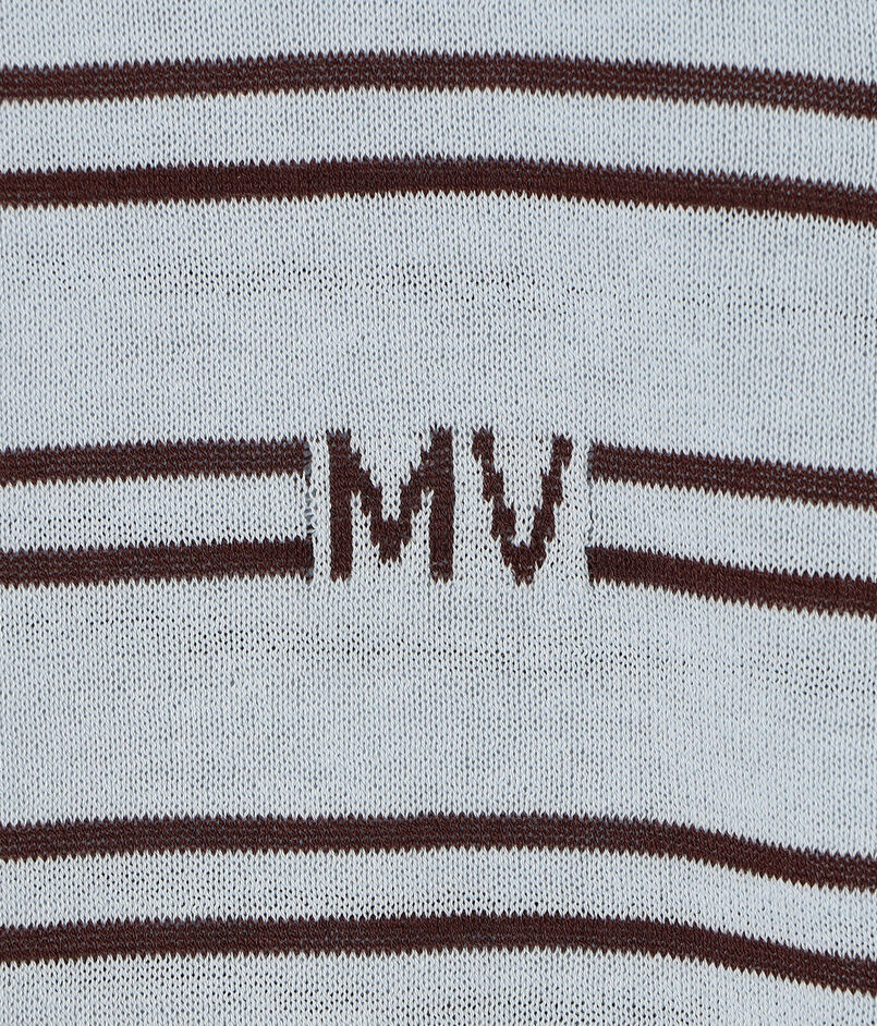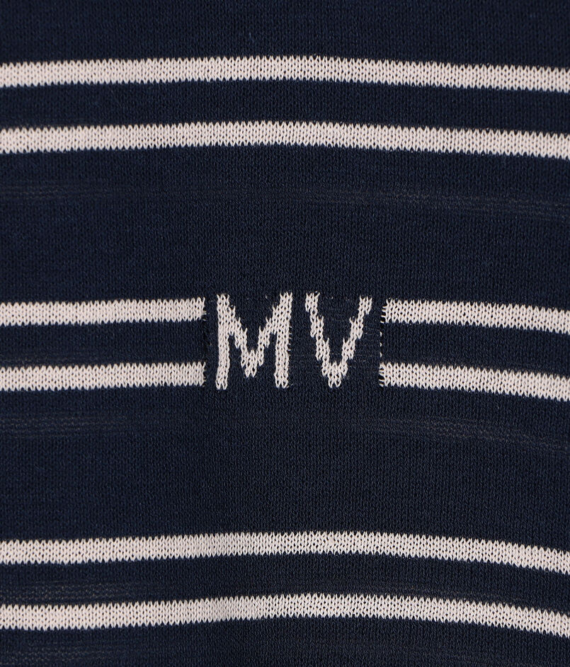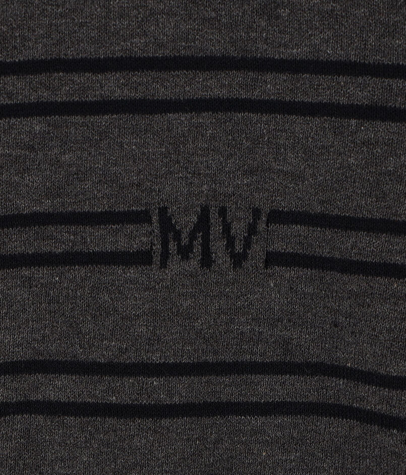胸元には部分針抜きジャカードでさりげなく「MV」のロゴをあしらい、デザインのアクセントに。ゆとりを持たせたベーシックなサイズ感で、一枚で着るのはもちろん、インナーとしてもバランス良く決まります。袖口と裾はシンプルな1×1リブで仕上げました。