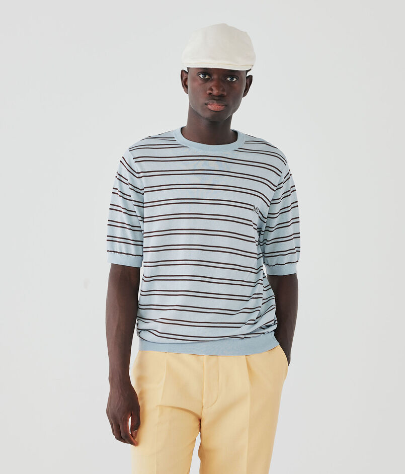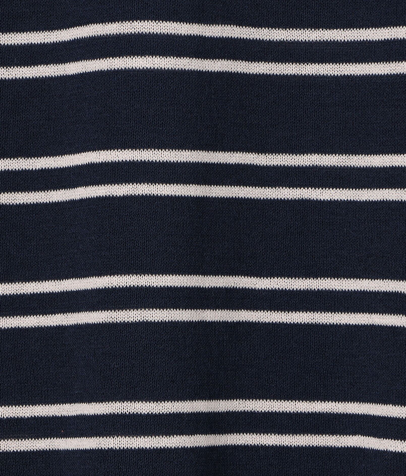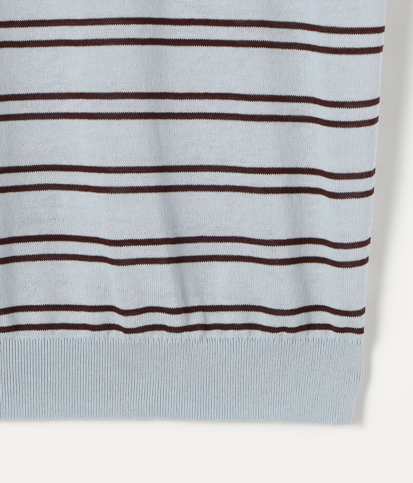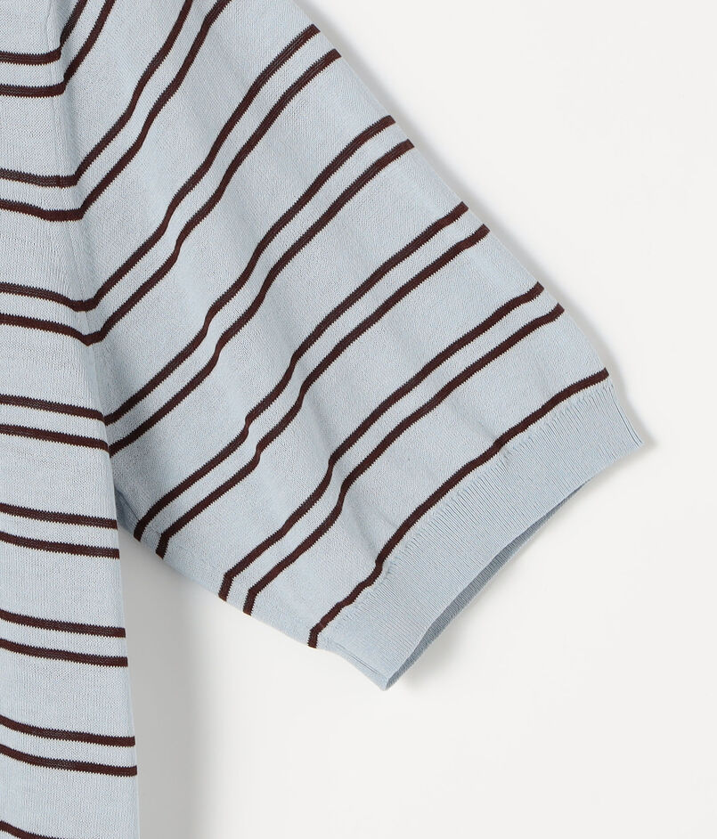 イタリア製の強撚コットン糸を使用した、ボーダーニットTシャツ。16ゲージで編み立てたさらりとした天竺生地は、肌に触れるとひんやりと感じる接触冷感機能があり、汗ばむ季節でも快適な着心地です。