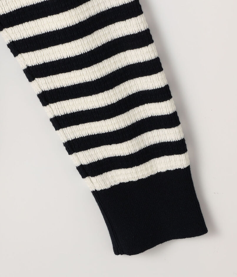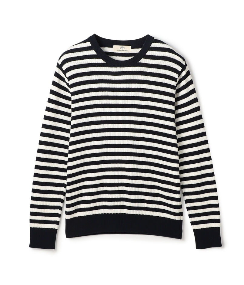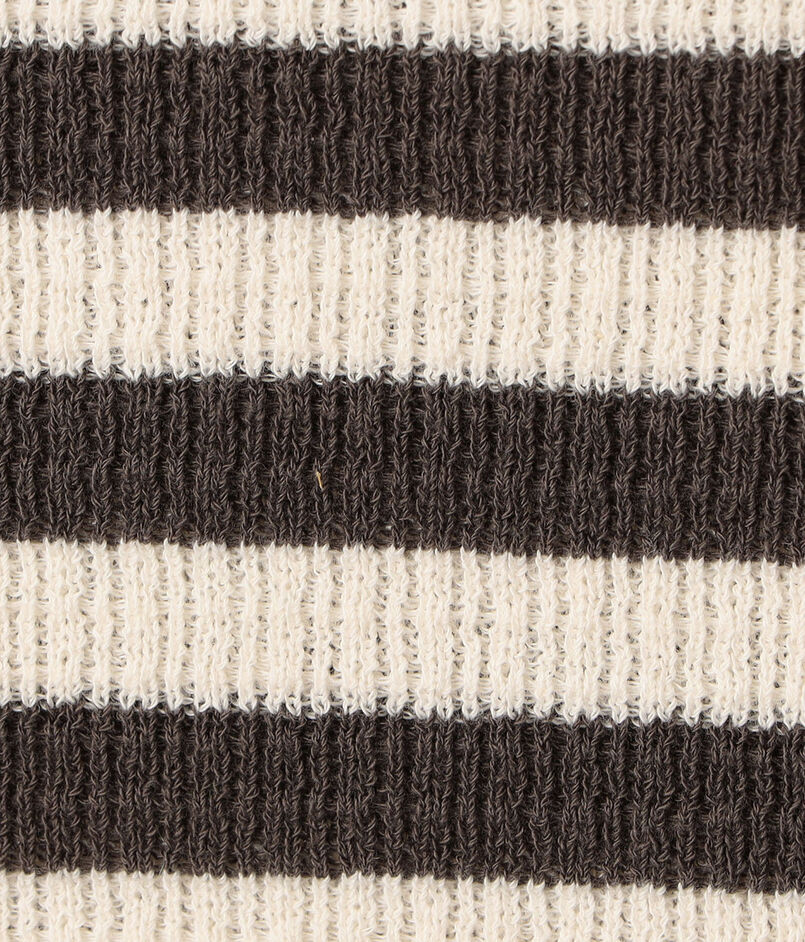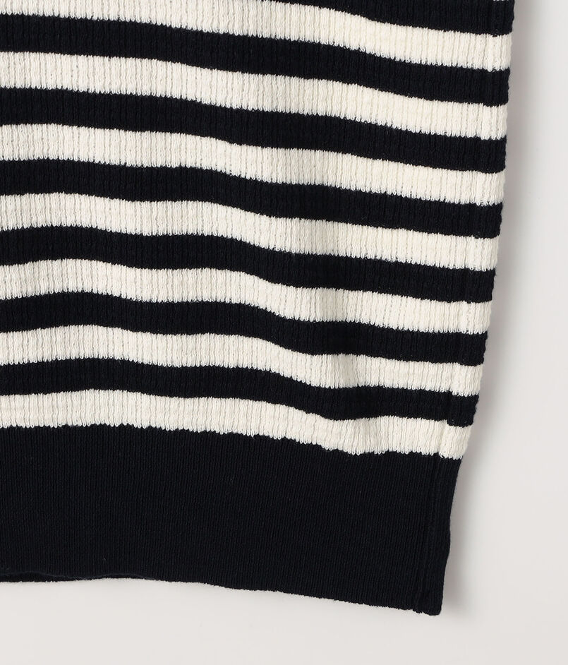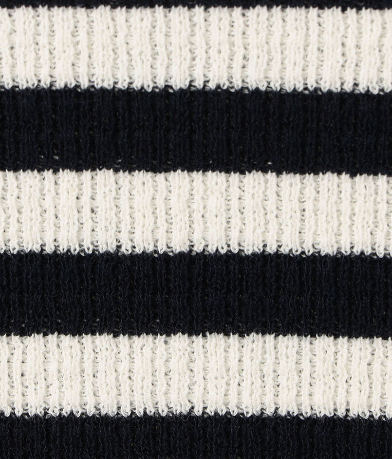 国内で紡績された、強撚コットンを使用したワッフルボーダーニット。ドライでさらりとした肌触りが特徴で、ほどよくハリがありながら、しなやかなドレープ感も楽しめます。シワになりにくく、イージーケアなのもポイント。