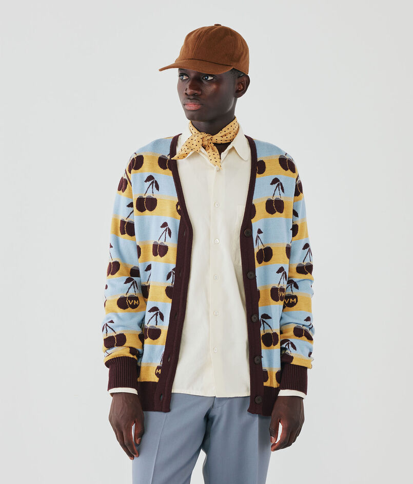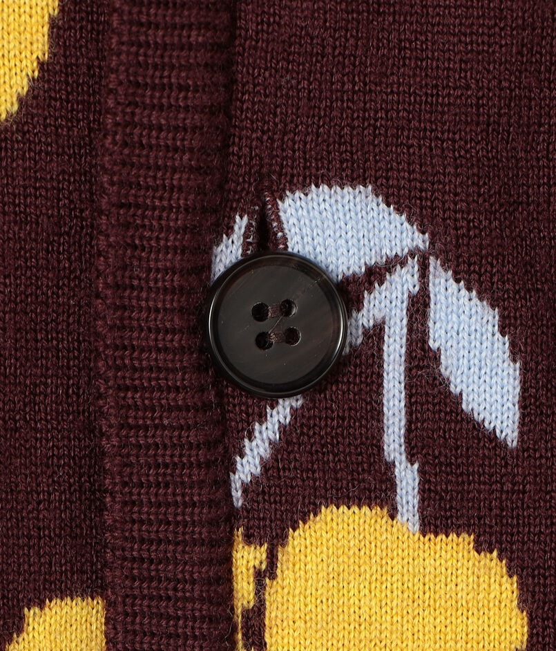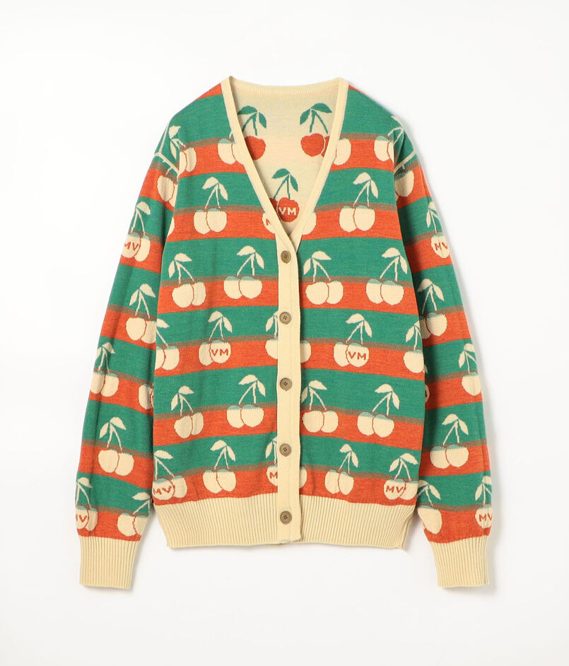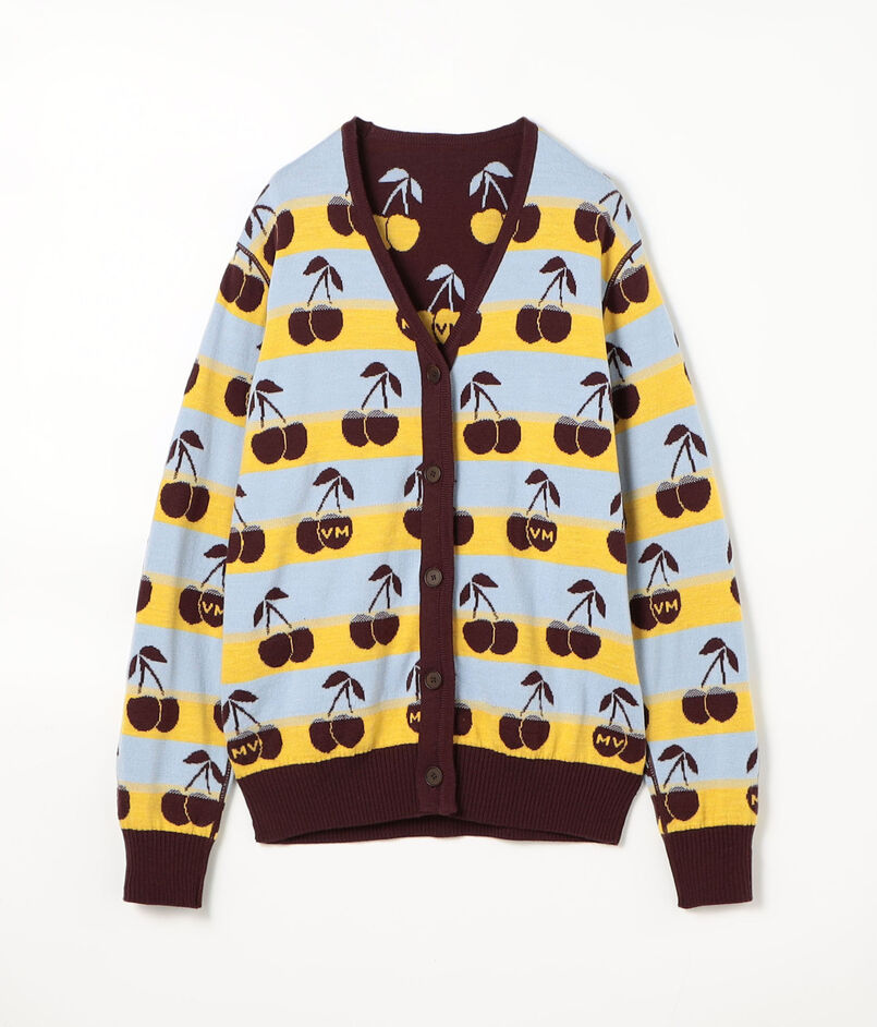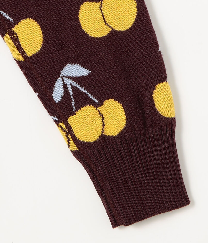 ウール チェリーモチーフ Vネックリバーシブルカーディガン