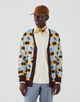 国内で紡績された上質な梳毛ウールを使用し、ユニークな袋ジャカードという手法で編み立てたニットカーディガン。通常のジャカードとは異なり、柄と柄の間を袋状に編むことで、柄を美しく見せるフラットな編み地を実現しました。
