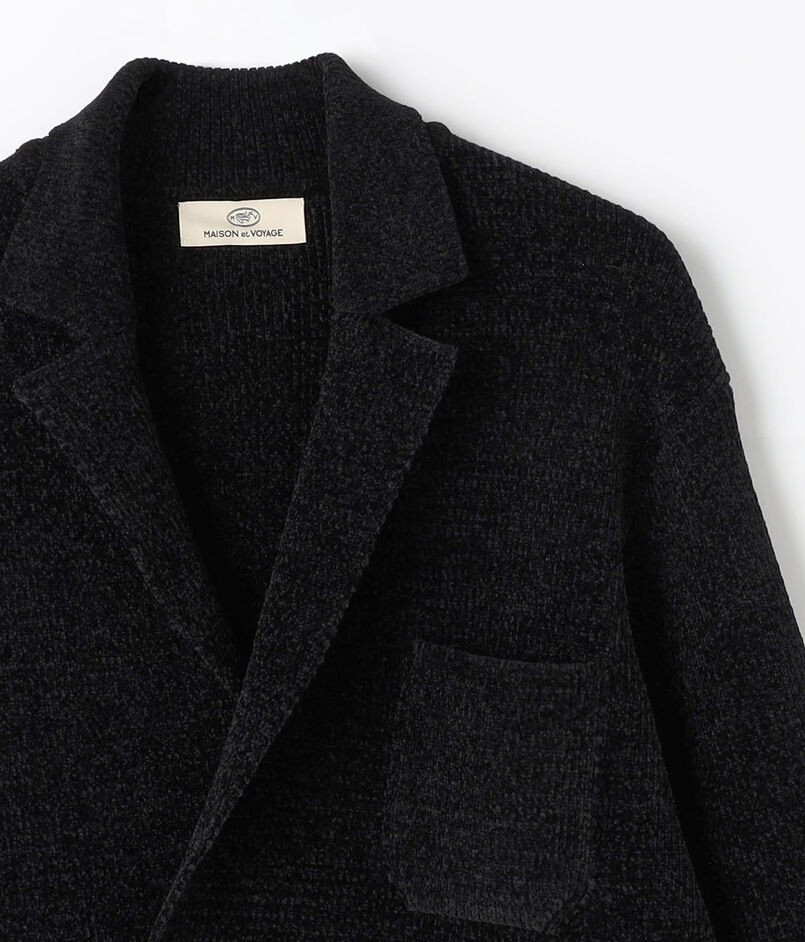 ポリエステル製のシェニールヤーンを使用した、微光沢が美しいリブニットジャケット。