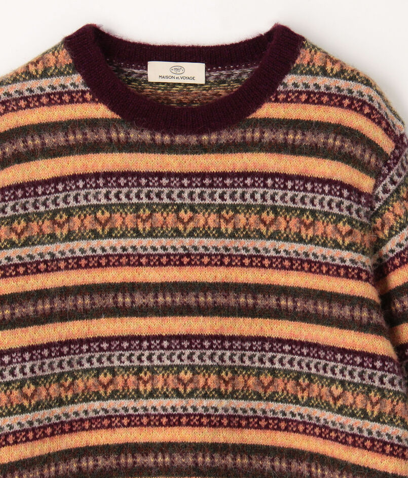 ウールアルパカ フェアアイルジャガード クルーネックプルオーバー