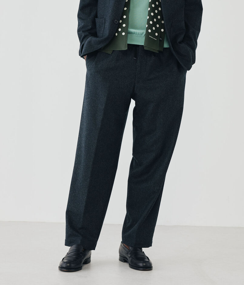ボリュームのある紡毛フランネルを、リラックス感のあるイージーパンツに仕上げました。