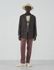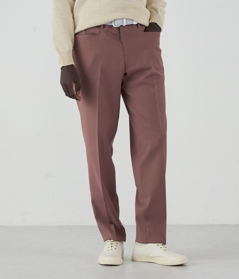 モデルはフレンチクラシックのノープリーツ+L型ポケット(L-PK)仕様。ヒップからワタリにかけて程よいボリュームを持たせ、裾に向かって緩やかに絞ったテーパードシルエット。