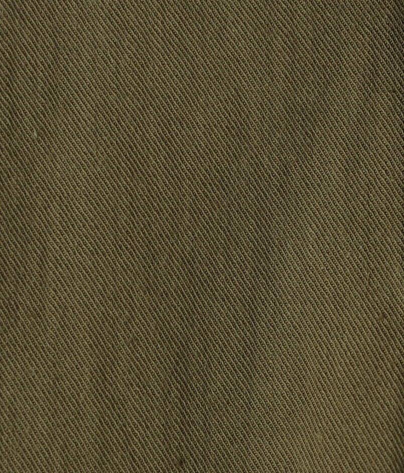 素材には、産業革命以前の希少な「英式紡績」で引いた糸を用いたコットンヘンプチノを採用。不均一なムラ感とタンブラー加工によるシボ感が、唯一無二の野性味あふれる表情を生み出しています。