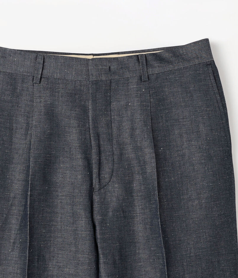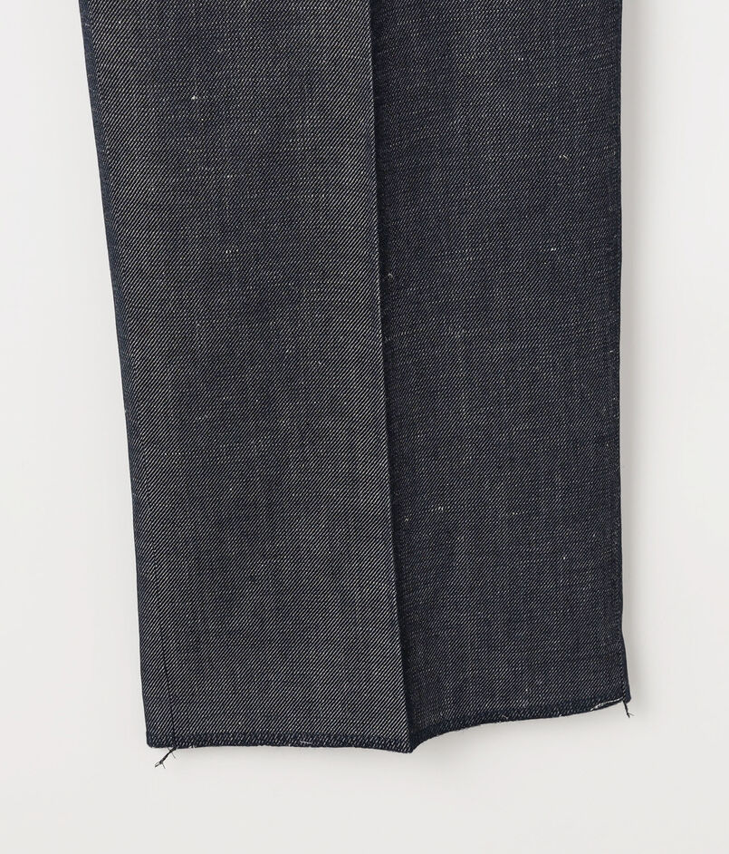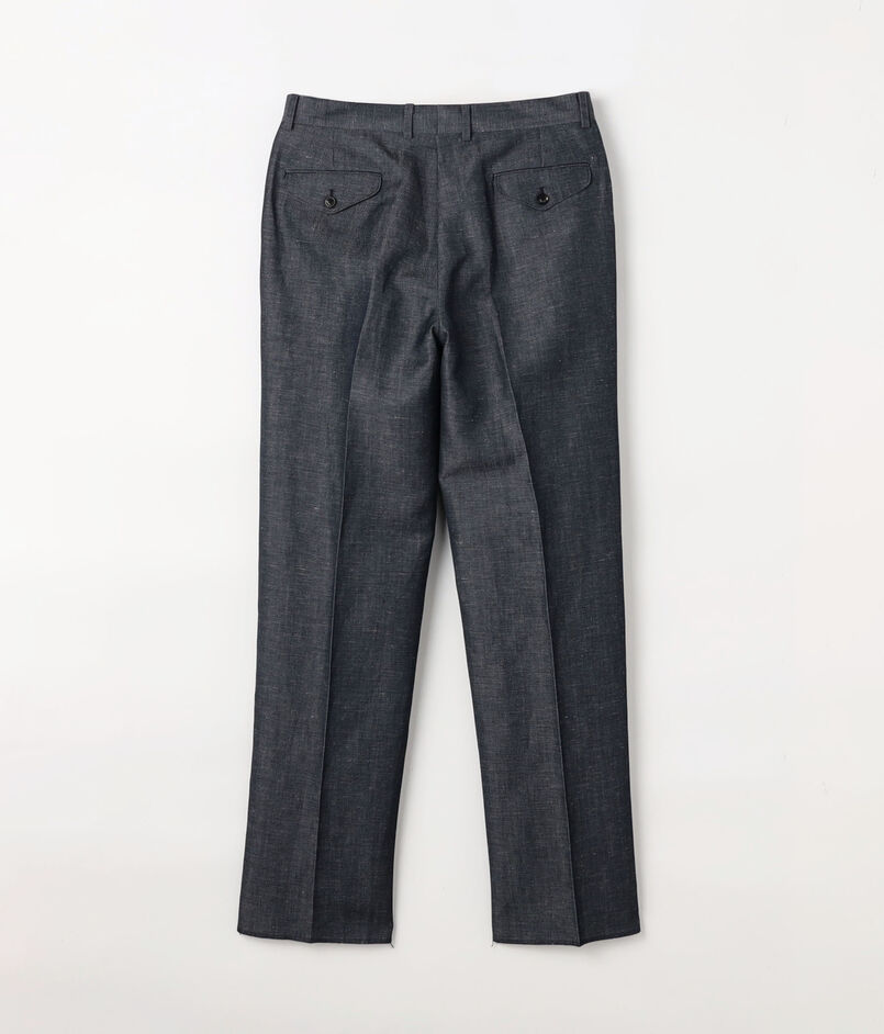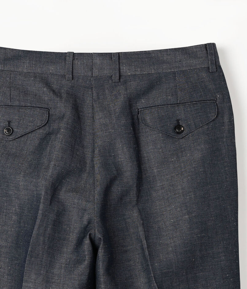 アウト1プリーツを施し、ほどよいボリューム感を持たせたエレガントなストレートシルエット。ピスポケットにはクラシカルなフラップを配し、細部までフレンチスタイルの美学を貫きました。