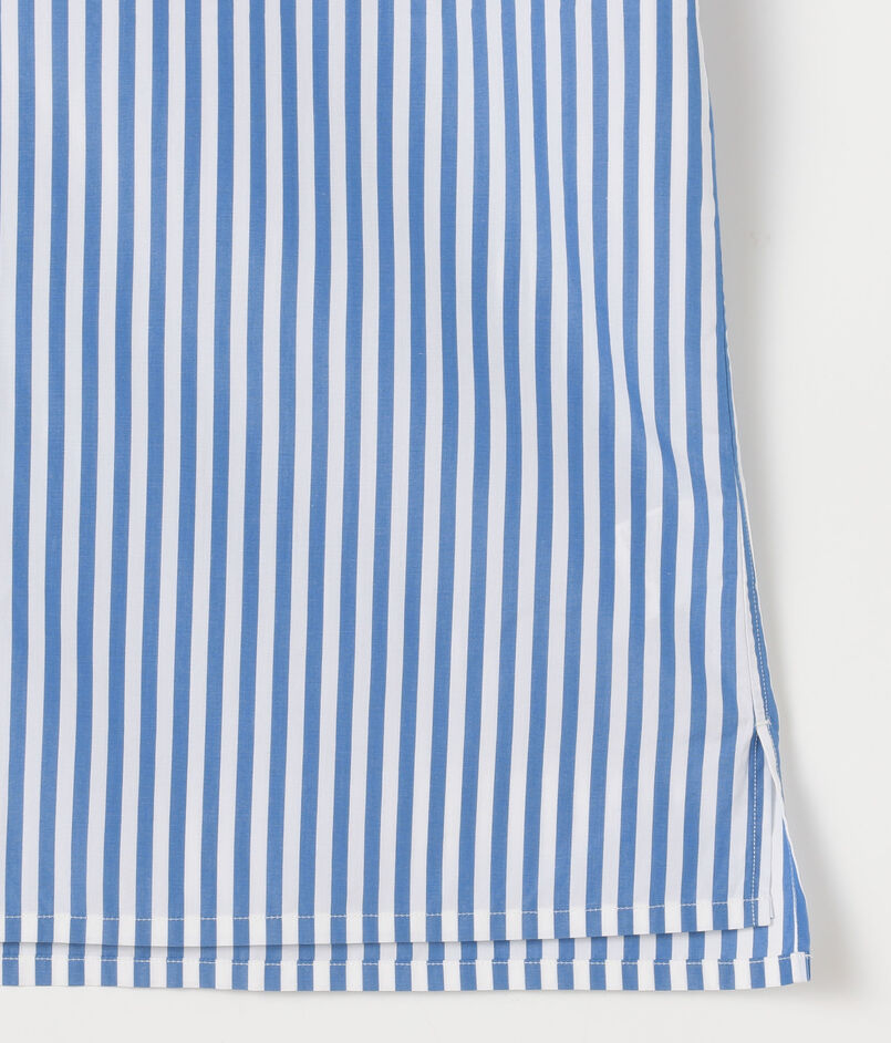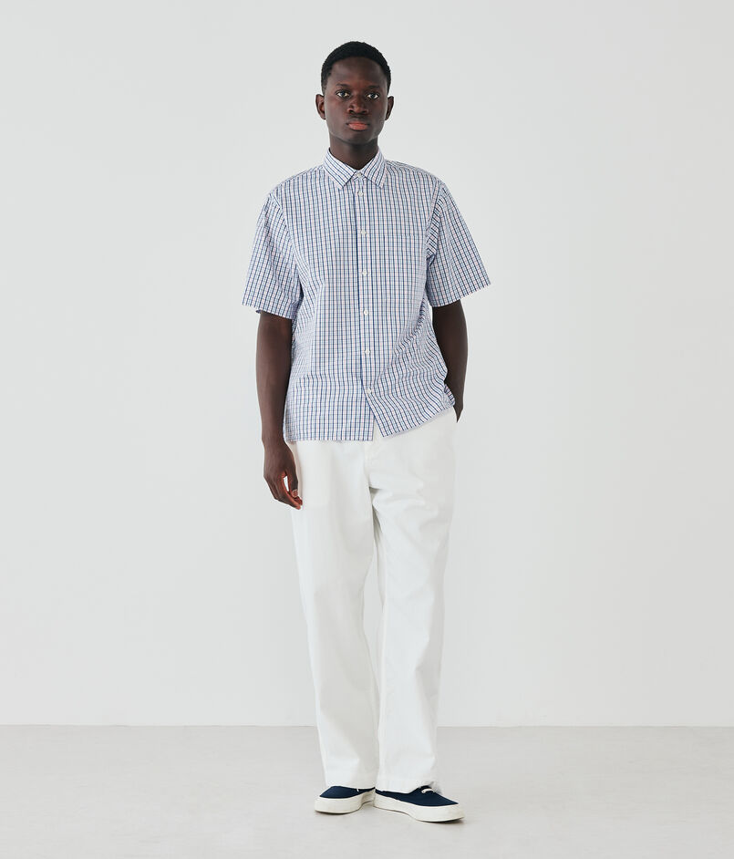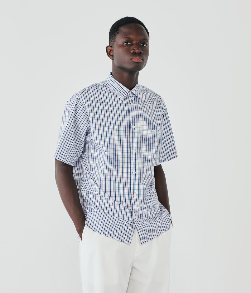 デザインは、着る人を選ばない普遍的なショートスリーブレギュラーカラーシャツ。着丈や身幅を調整することで、多様なスタイルに馴染むサイズバランスを追求しました。サイドスリットにより、タックイン・アウトどちらのスタイルにも対応します。