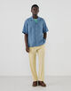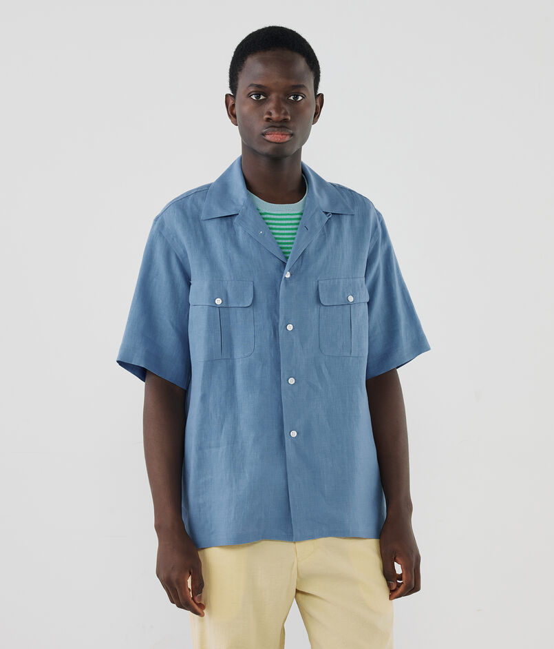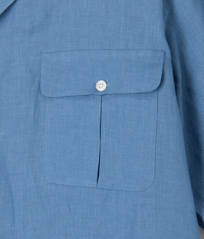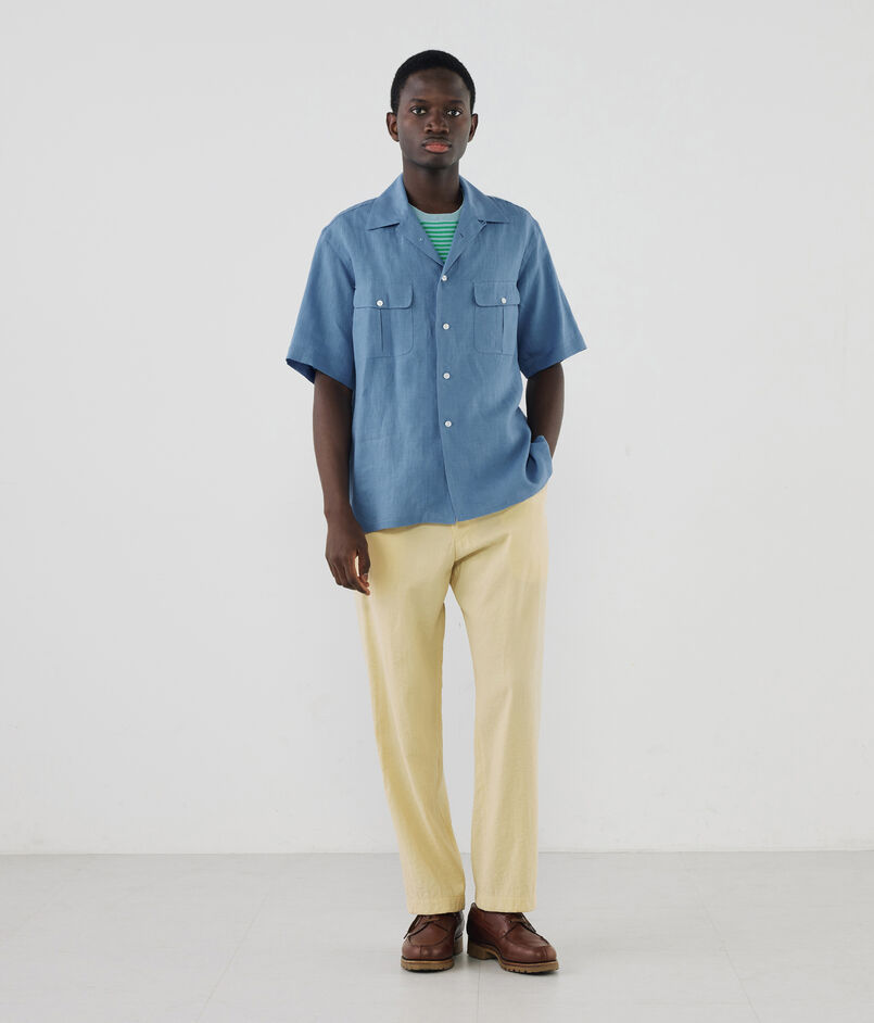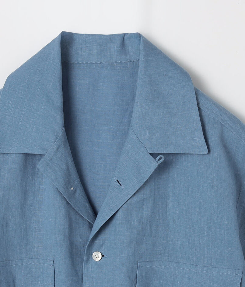 名門〈THOMAS MASON(トーマス・メイソン)〉社が誇る、リネン100%の至高の定番素材『GOLD LINEN』を採用したワンナップカラーハーフスリーブシャツ。