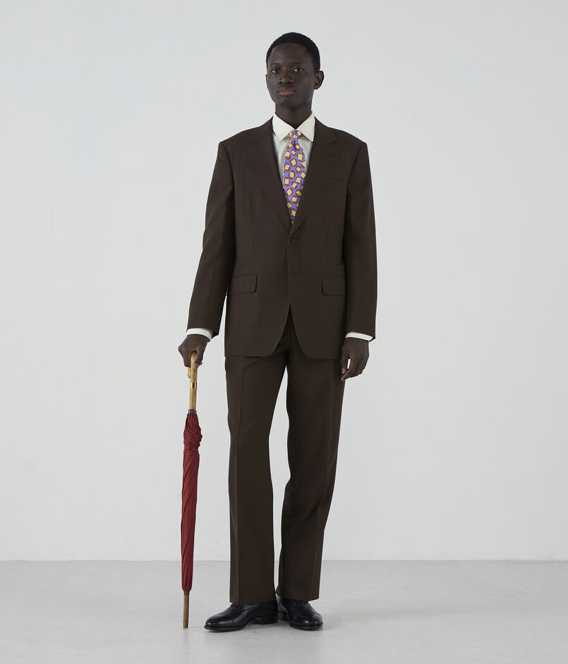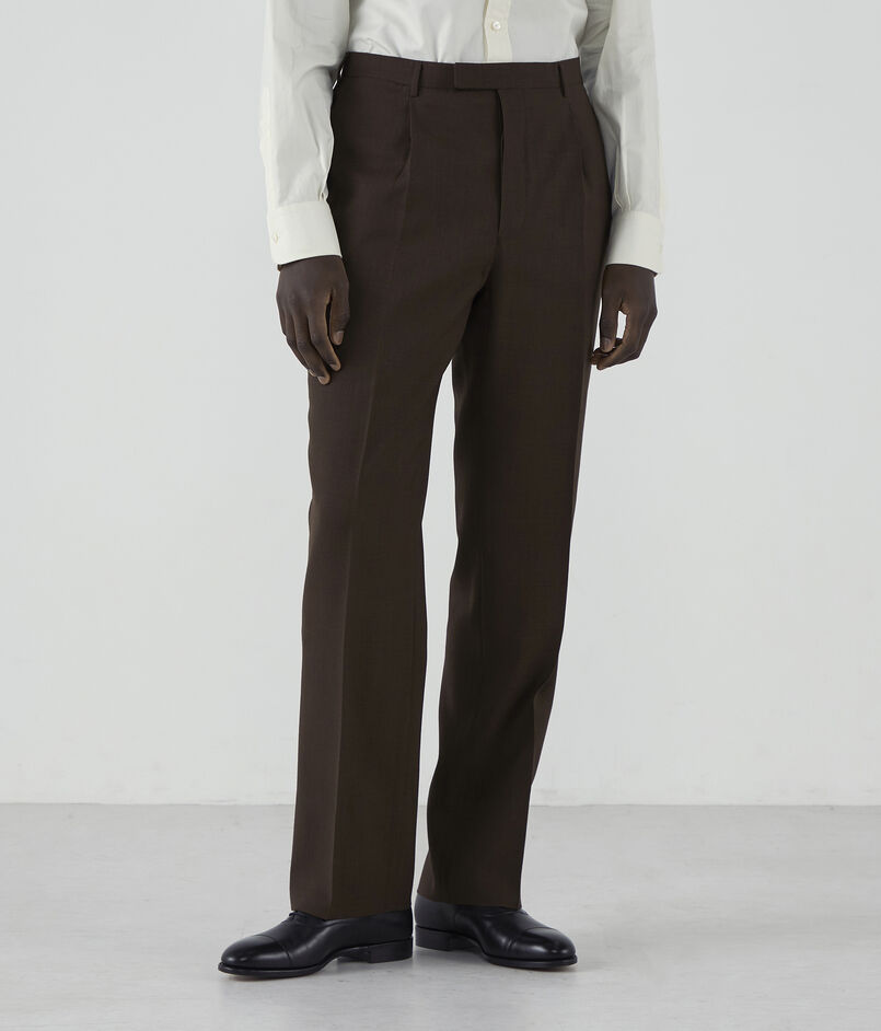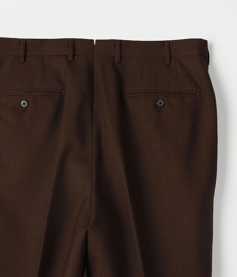 パンツはアウト1プリーツのテーパードシルエットで、なだらかにテーパードするようなストレートシルエットを採用。