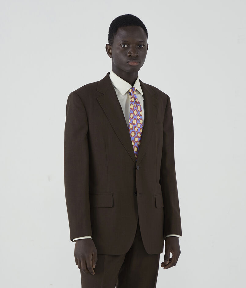 セミノッチラペルが特徴的なシングルブレステッドスーツ。