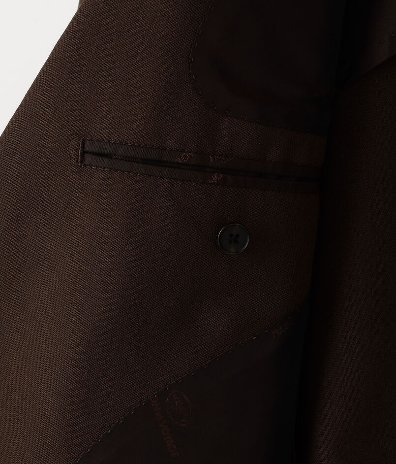 DROP6のほどよいゆとりを持たせたシルエットのジャケットは、構築的な肩回りの縫製により肩先をやや盛り上げたロープドショルダーと、しっかりとしたフルキャンバス仕立てが特徴のモデルです。